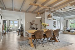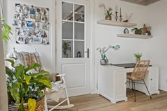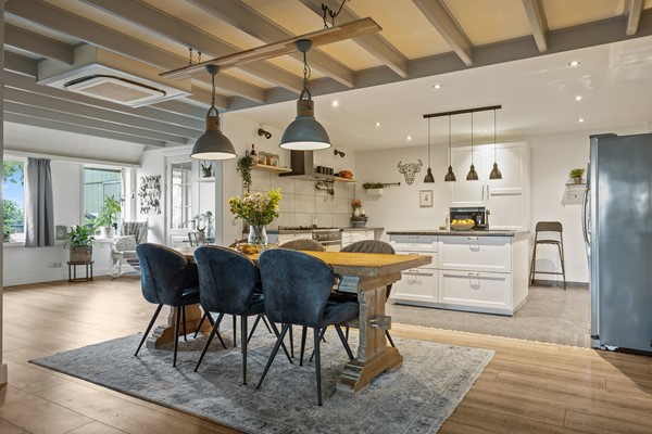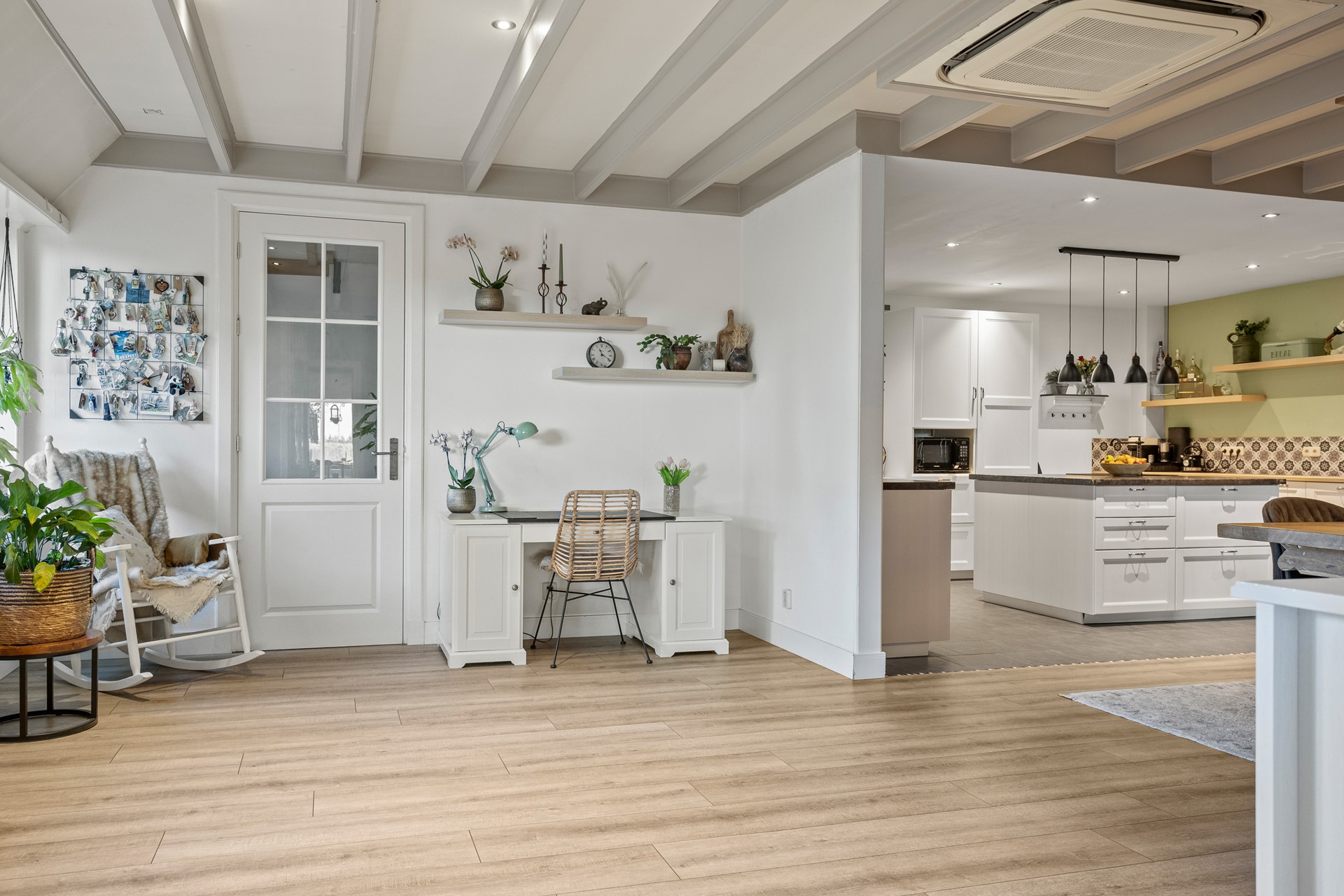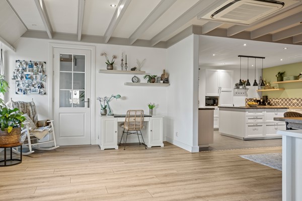 De hal biedt toegang tot de royale leefruimte met aangrenzend de bijkeuken, de woonkeuken en de woonkamer. Als je de kamer binnenstapt, zie je direct mogelijkheden als je op zoek bent naar meer ruimte binnenshuis.