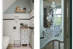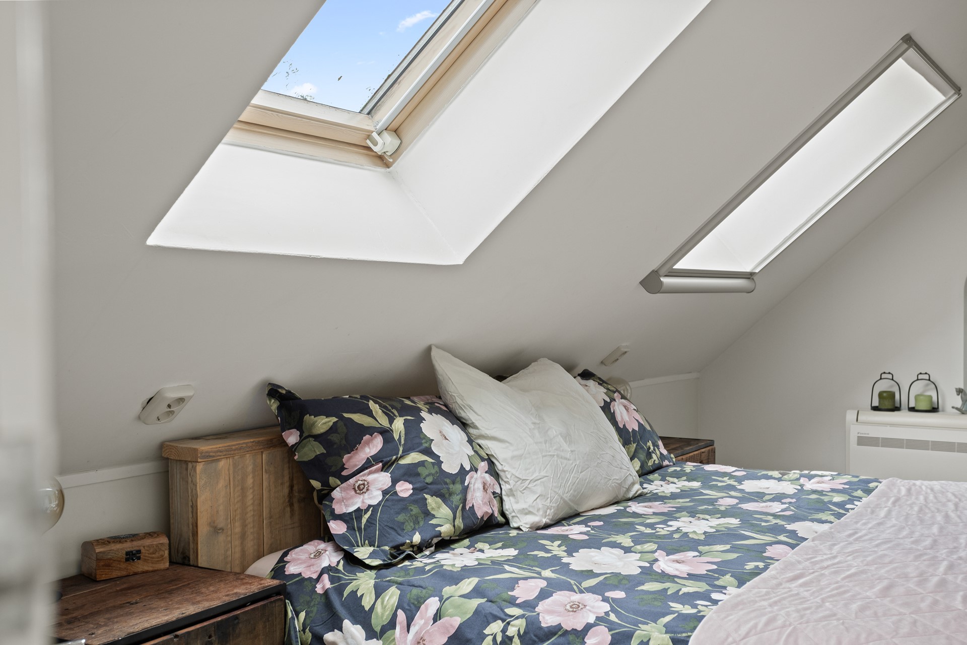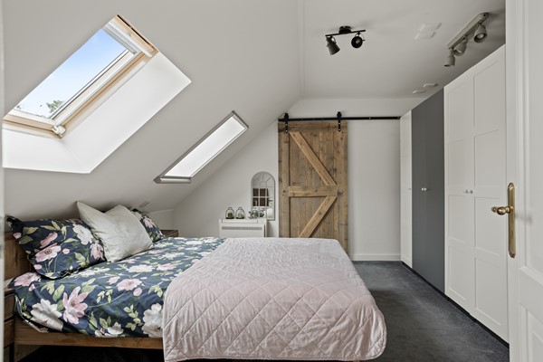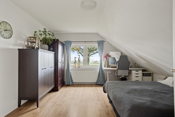Er zijn twee royale slaapkamers aanwezig op de eerste verdieping en een tussengelegen badkamer. De slaapkamer aan de voorzijde heeft een fantastisch uitzicht op de landerijen, de slaapkamer aan de achterzijde heeft een zeer royale berging. Deze berging kan ingericht worden als walk-in closet of als badkamer. De aansluitingen, zoals water en riool zijn al voorbereid.