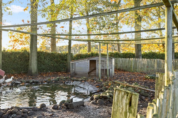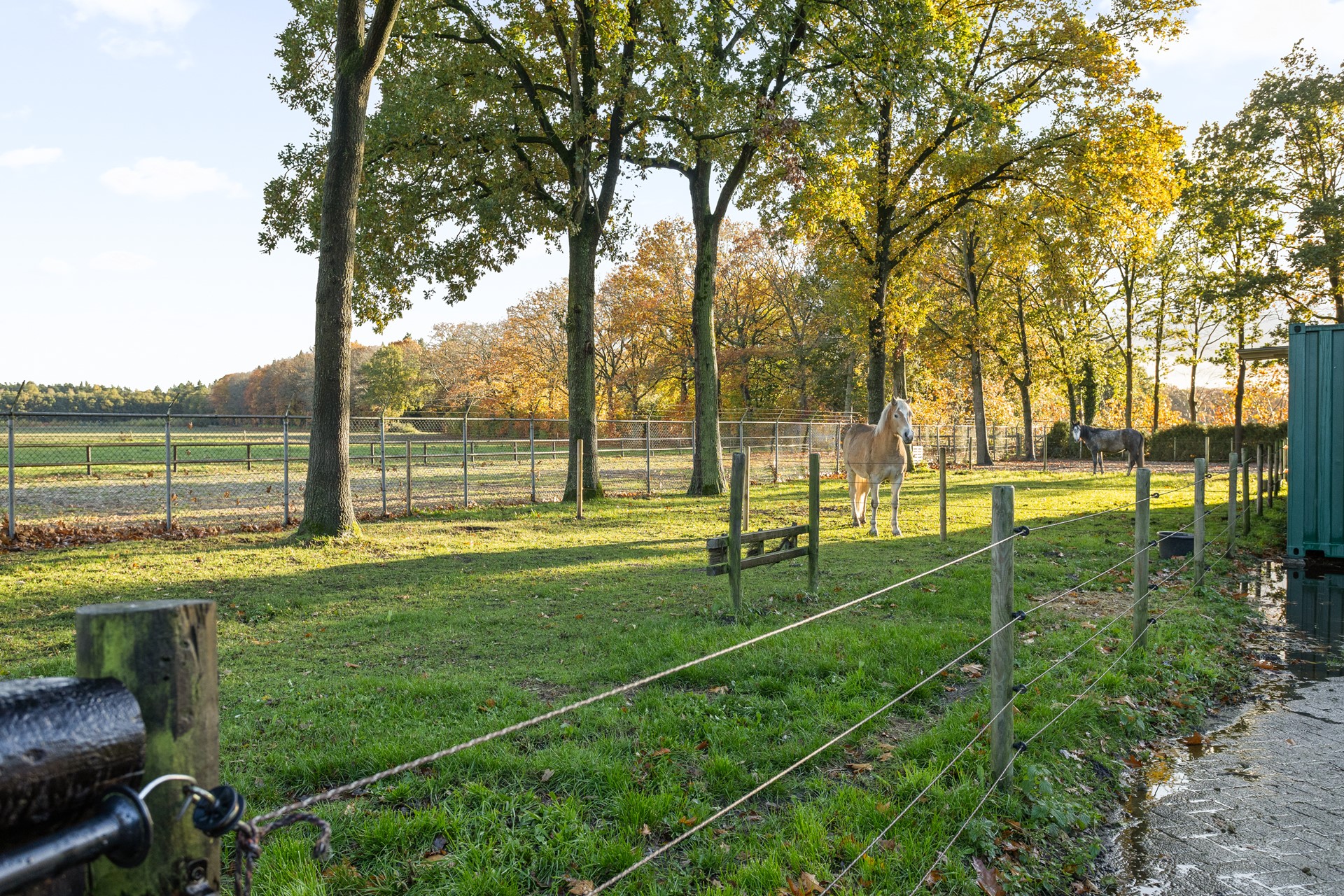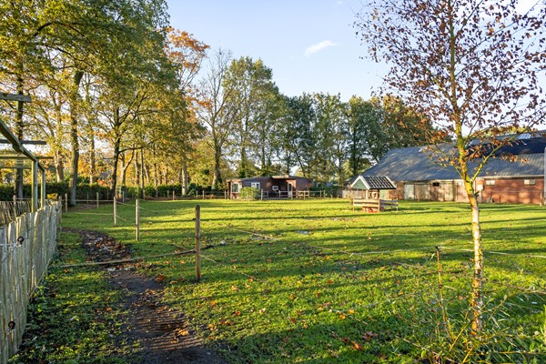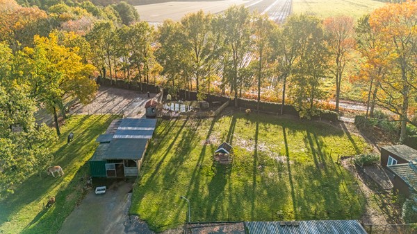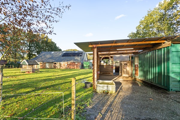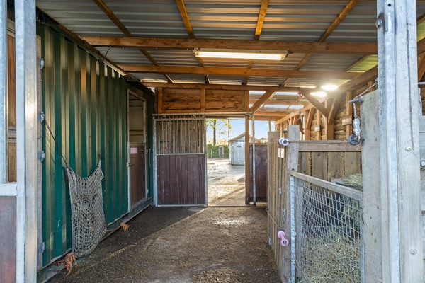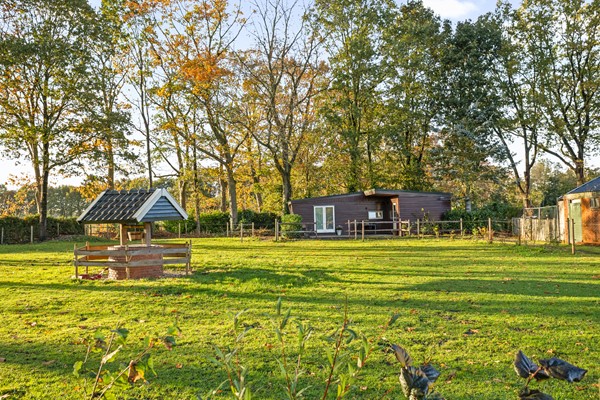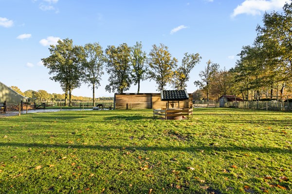 Tegenover de woning langs de oprit is een houten schuur geplaatst voor je fietsen. Aan het einde van de oprit gaat het perceel over in de breedte. De tuin is nu ingericht om paarden bij huis te hebben, inclusief stallingsruimte, welke ter overname worden aangeboden en een weiland. Ideaal is de nostalgische waterput voor de watervoorziening voor je tuin of je dieren.