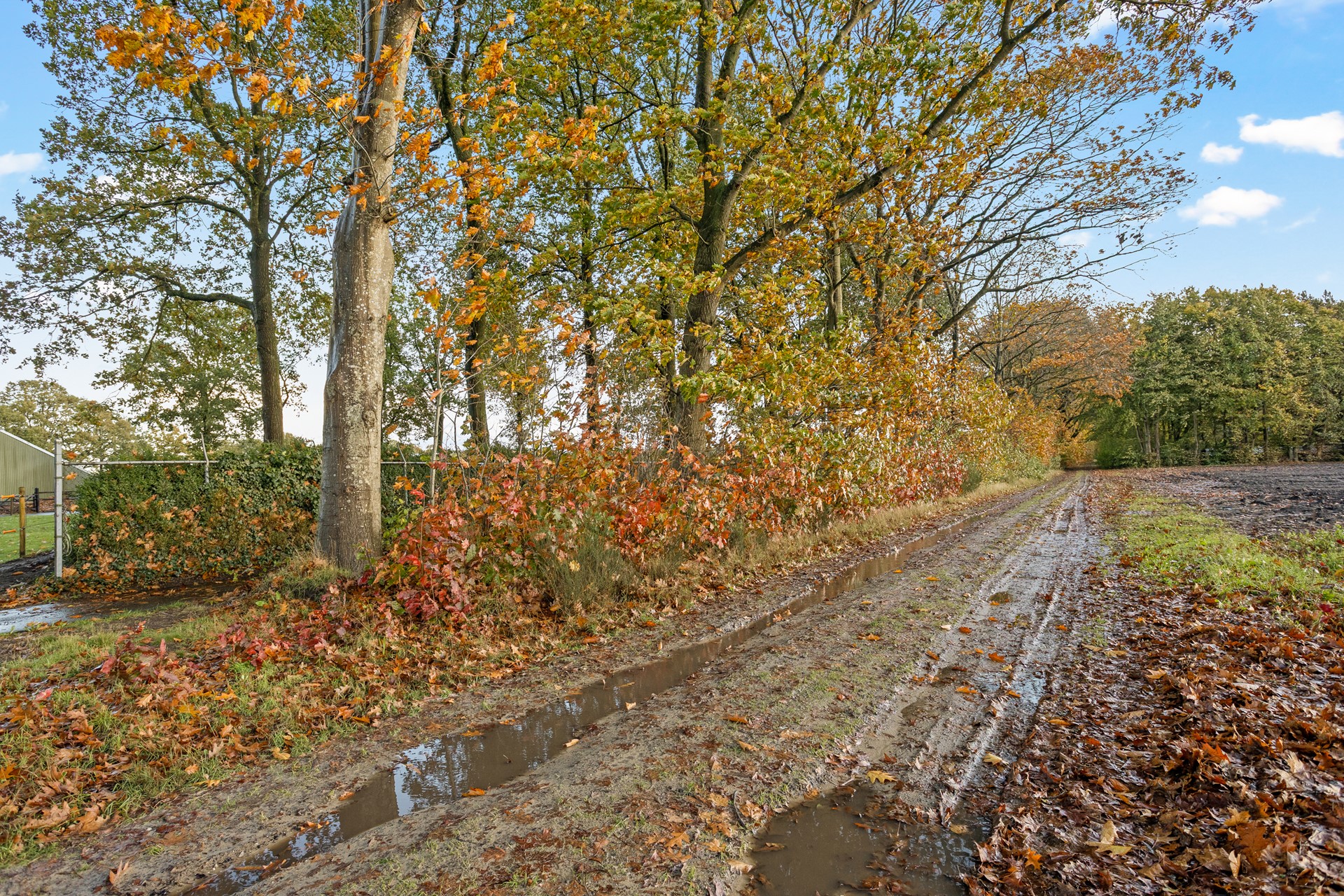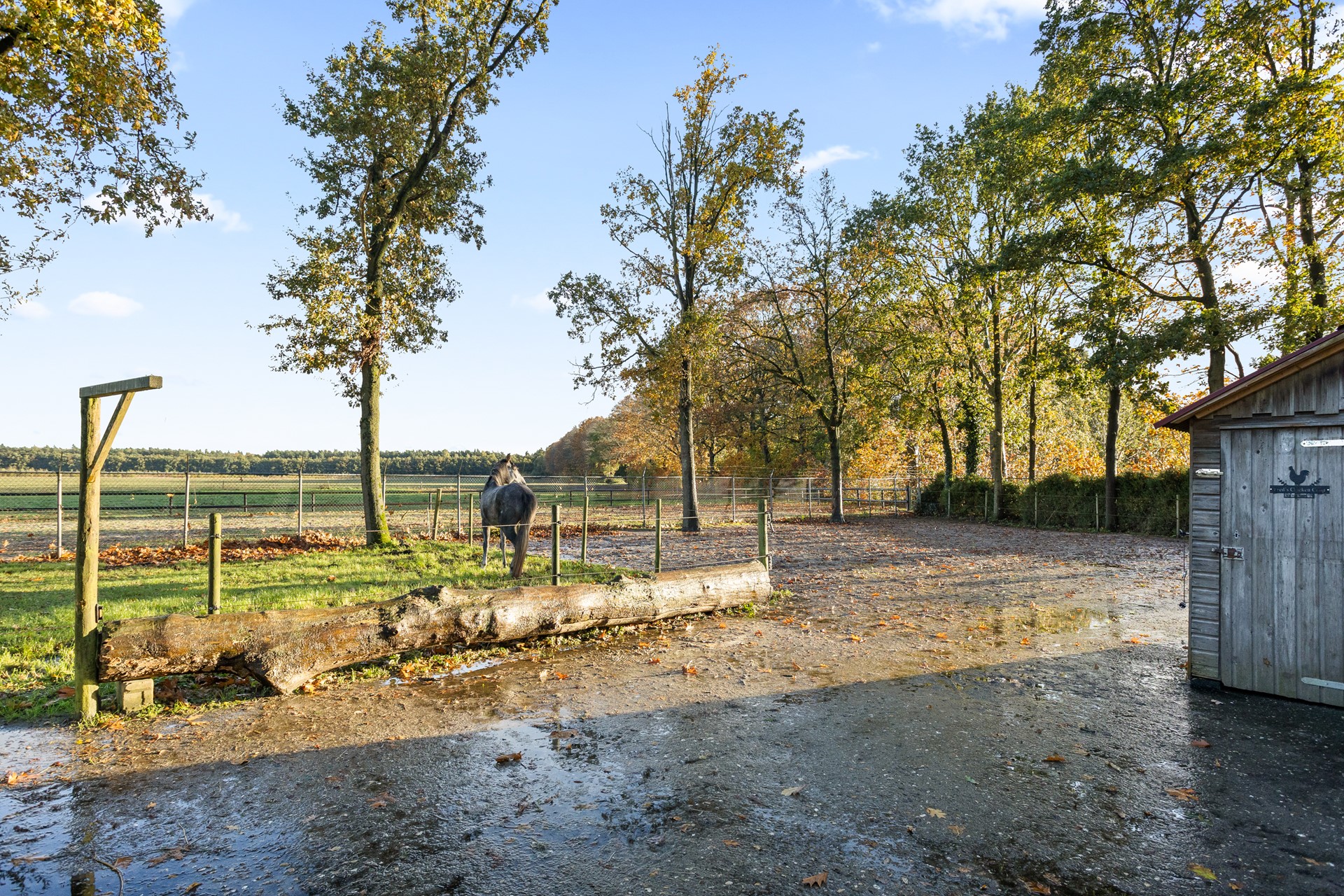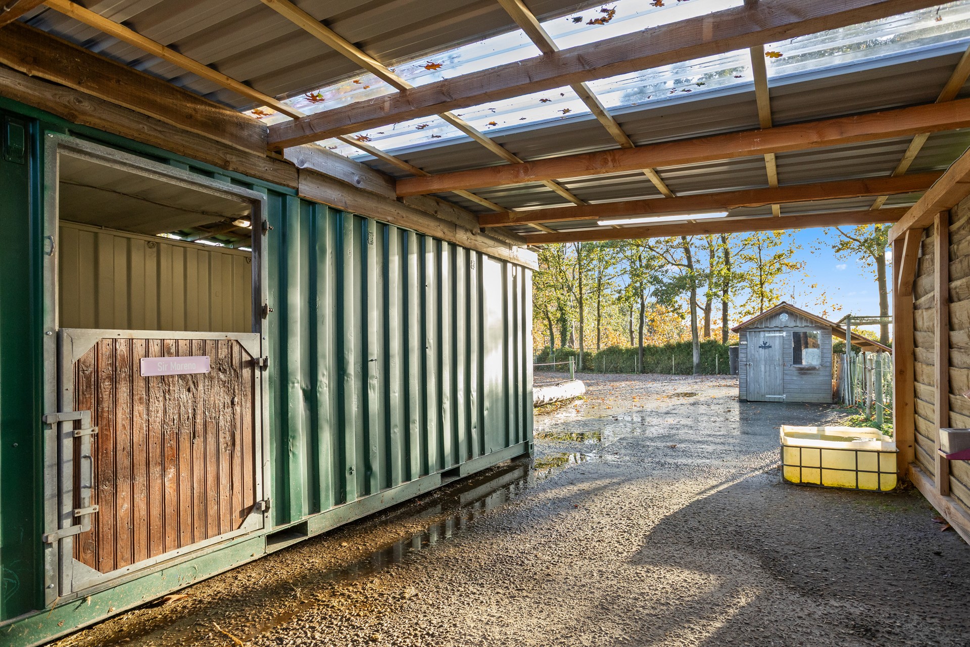 Tegenover de woning langs de oprit is een houten schuur geplaatst voor je fietsen. Aan het einde van de oprit gaat het perceel over in de breedte. De tuin is nu ingericht om paarden bij huis te hebben, inclusief stallingsruimte, welke ter overname worden aangeboden en een weiland. Ideaal is de nostalgische waterput voor de watervoorziening voor je tuin of je dieren.