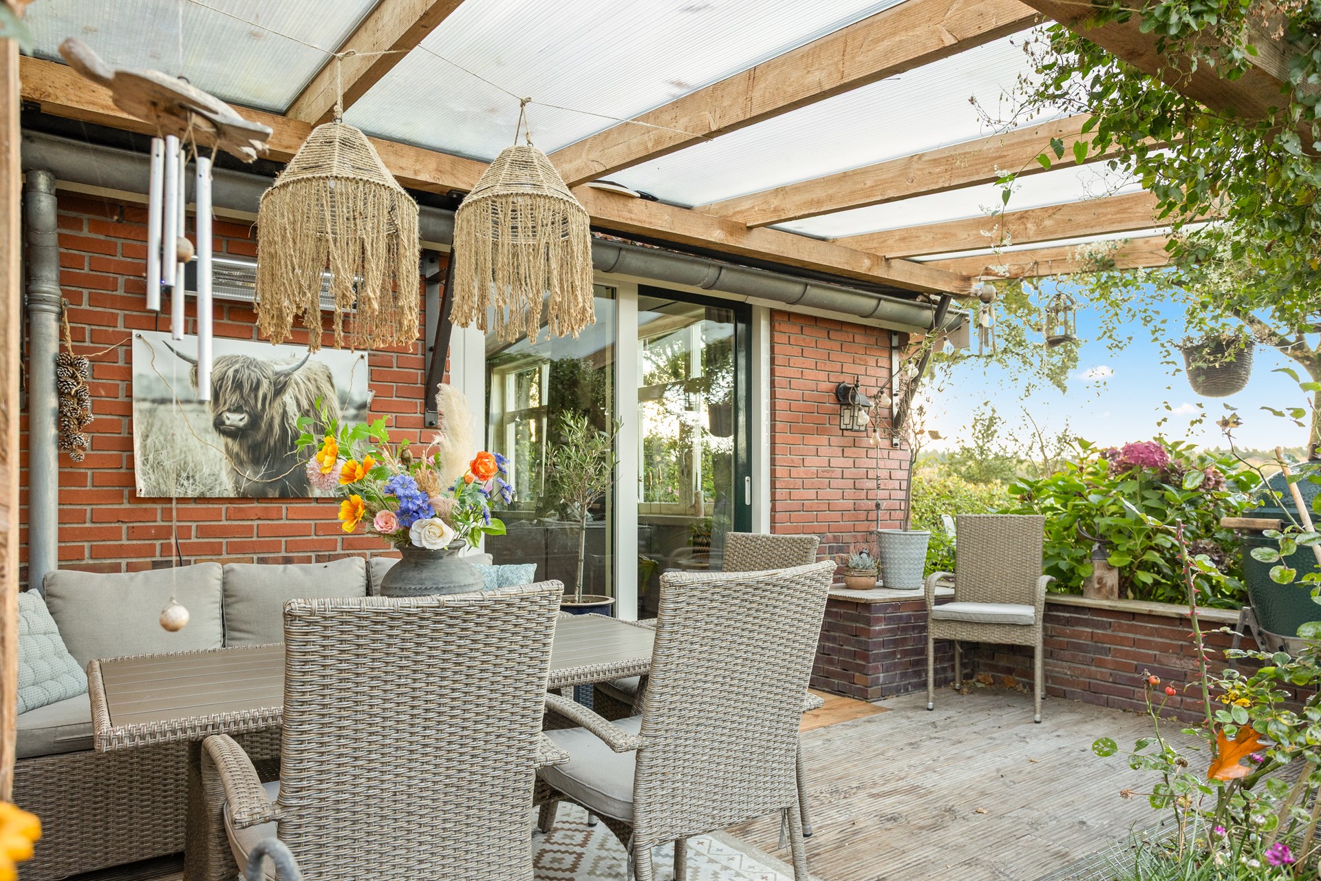 Vanuit de woonkamer stap je via de openslaande deuren de overdekte veranda op. Zie je jezelf hier al zitten met je gezin of vrienden met de barbecue aan?
