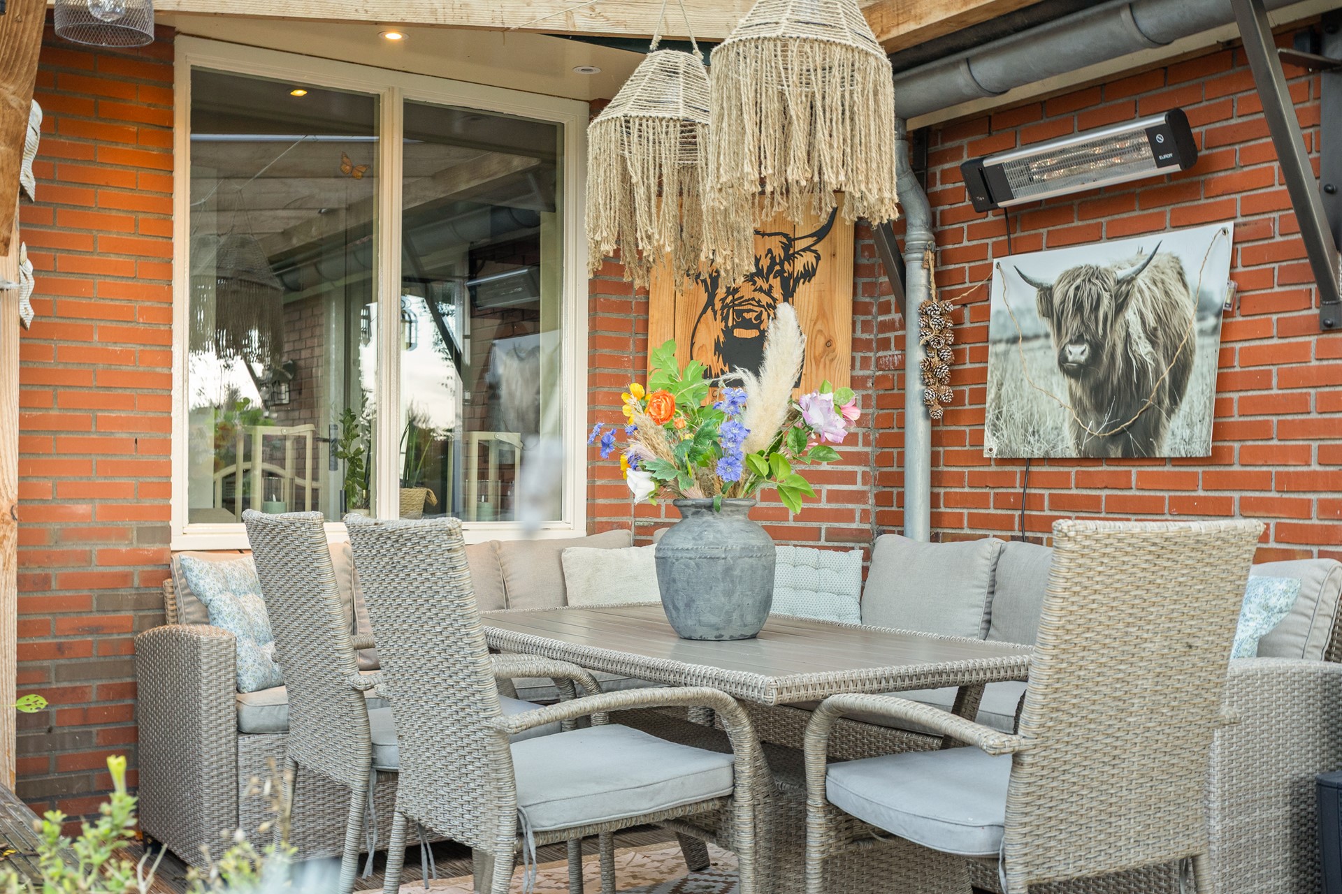 Genoeg over de fijne leefruimte binnen. We laten je buiten zien.