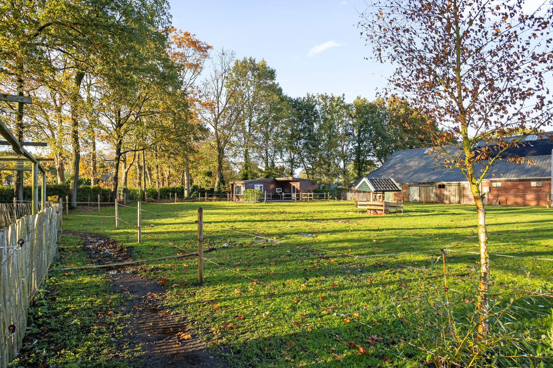 Vanuit de chalet in de achtertuin geniet je van een uitzicht op je eigen paarden, kippen of schapen en de rustige groene omgeving. Vanuit het zandpad met naastgelegen fietspad rijd je met je paard en fiets of wandel je zo het bos van De Kiel in zonder de weg over te hoeven steken.