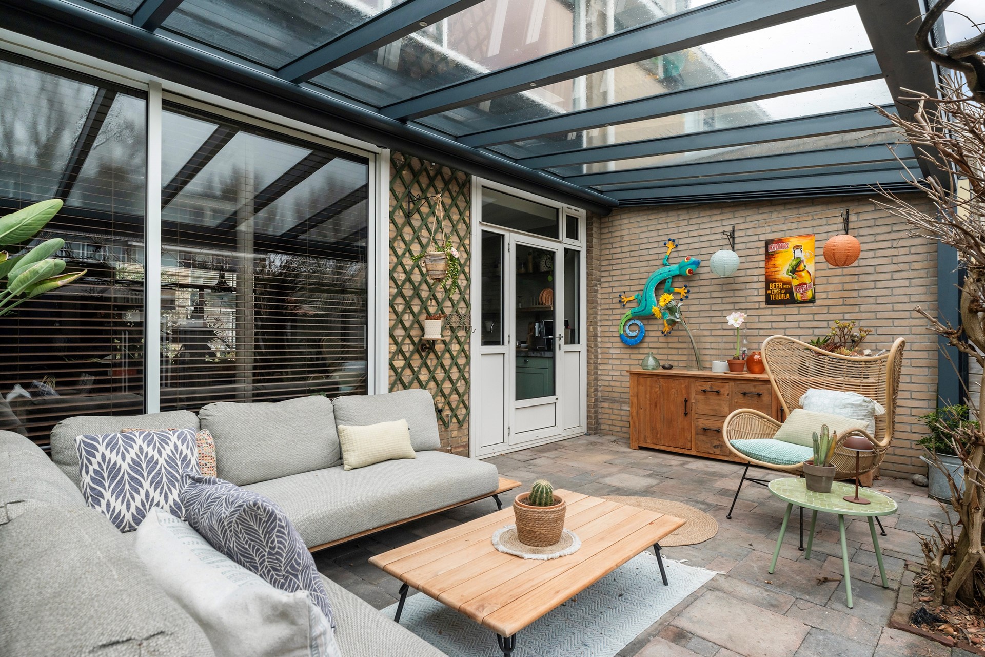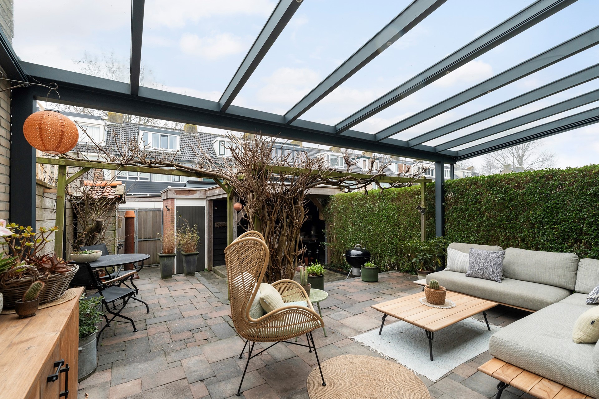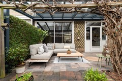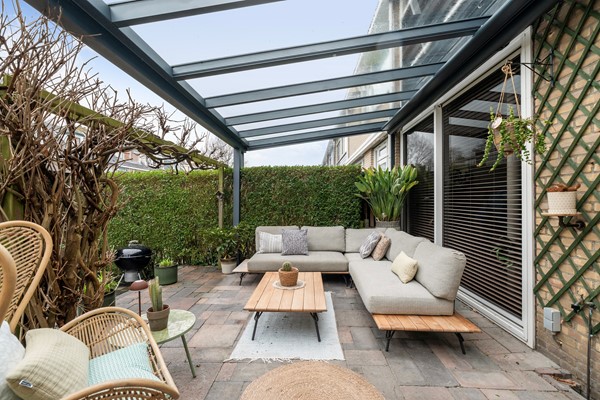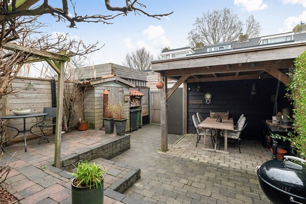 Buitenleven: Genieten onder de overkappingVia de achterdeur stap je de heerlijk ruime achtertuin in. Dankzij de grote, hoogwaardige overkapping aan de woning kun je al vroeg in het voorjaar en tot diep in het najaar buiten zitten. De tuin beschikt over een grote berging en een handige achterom.