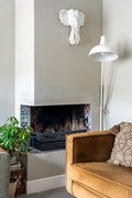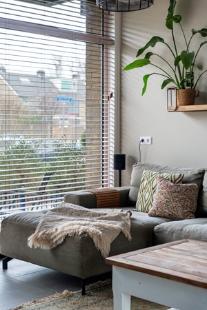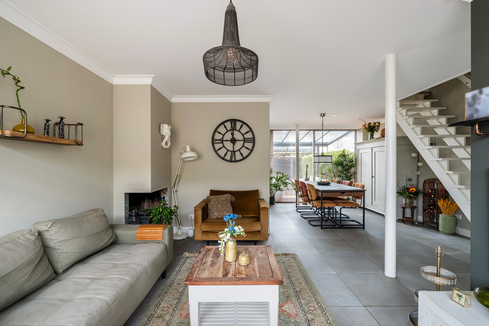 Zodra je de woonkamer binnenstapt, valt direct de breedte van de woning op. De begane grond is voorzien van een drempelloze tegelvloer met comfortabele vloerverwarming. Aan de voorzijde bevindt zich de royale zithoek met een sfeervolle openhaard; de ideale plek voor koude winteravonden.