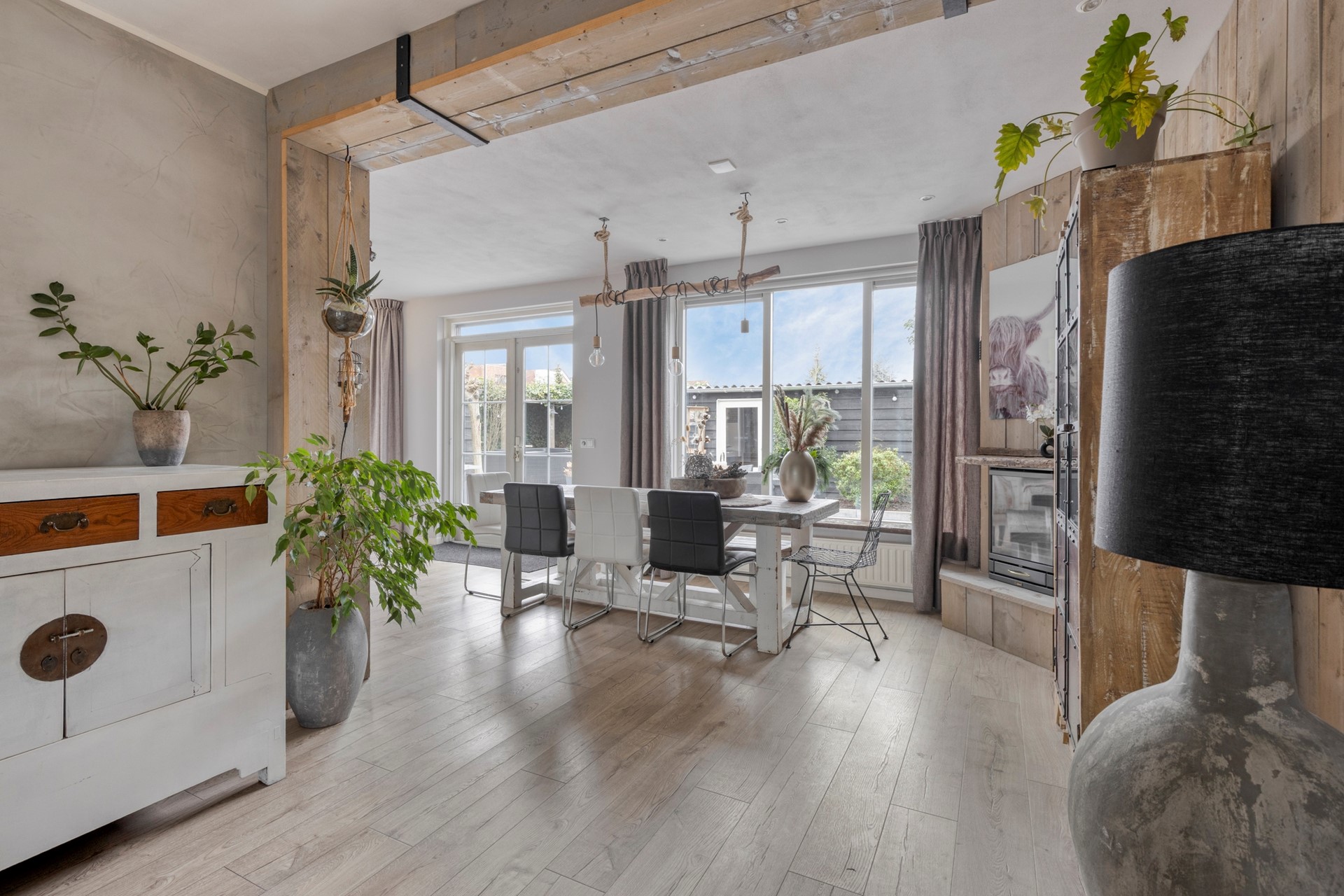 De woonkamer is licht en sfeervol, met een laminaatvloer en strak afgewerkte stucwanden en -plafond. Aan de achterzijde is het huis uitgebouwd, waardoor er volop ruimte is voor een grote, gezellige eettafel. Perfect voor lange diners, spelletjesavonden of gewoon een goede kop koffie in de ochtend.