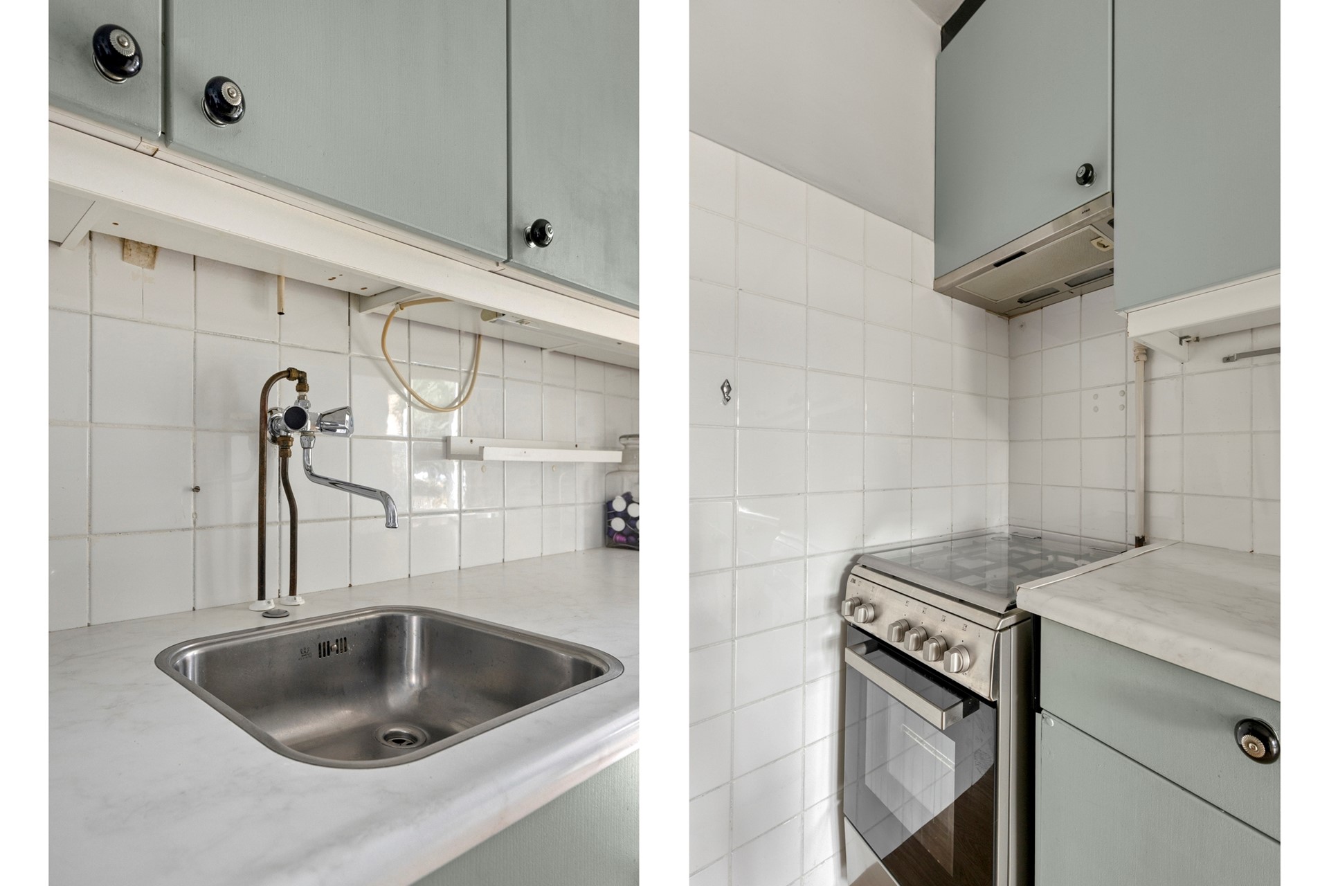 De keuken is eenvoudig en functioneel ingericht met een rechte opstelling, voorzien van boven- en onderkastjes en losse apparatuur zoals een gasfornuis, oven, afzuigkap en vaatwasser. Een fijne basis die je eventueel helemaal naar eigen smaak kunt upgraden.