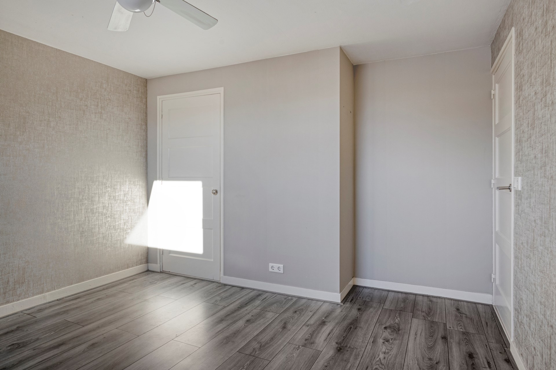 De derde slaapkamer is de kleinste, maar nog steeds goed om te gebruiken als babykamer, kantoor, of inloopkast. Net als beneden, zijn ook op deze verdieping alle kozijnen van kunststof. Je kan ze draaien en kantelen en ze zijn voorzien van horretjes.