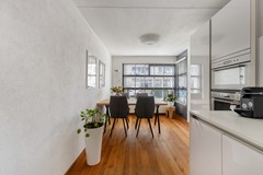 Bij het raam aan de voorzijde is ruimte voor een eettafel, waar je geniet van veel daglicht.