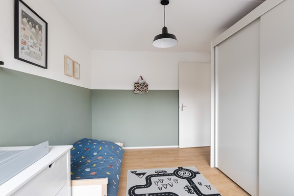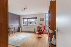 Slaapkamer voorzien laminaat en spagtelputz. De slaapkamer is voorzien van een draai-kiepraam en handmatig rolluik. Ideaal voor een goede nachtrust.