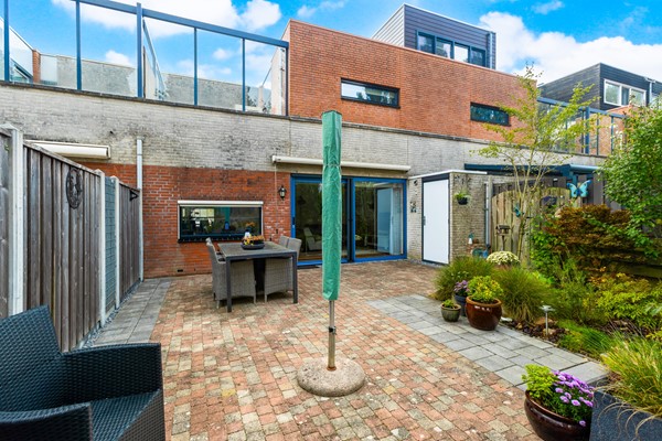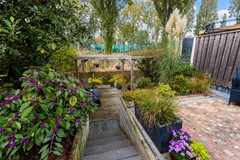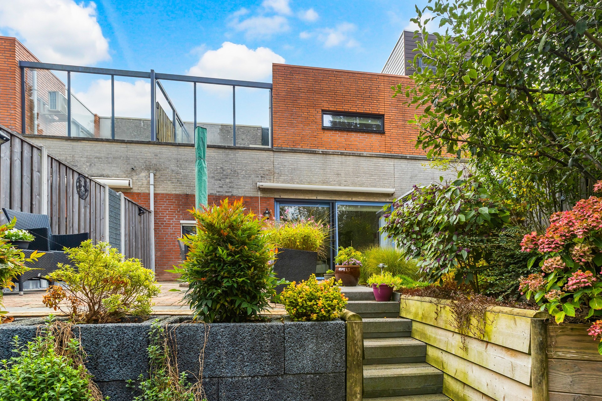 Buiten is het minstens zo prettig: een dakterras én een ruime, op het zuidwesten gelegen tuin met pergola, borders en uitzicht op het water. Hier geniet je op elk moment van de dag van je favoriete plek.