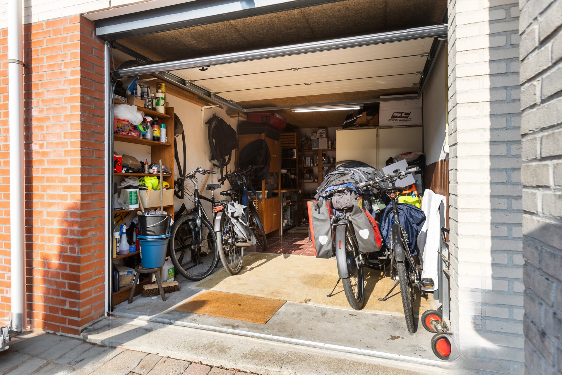Ruime garage met handmatige overheaddeur en elektra. Ideaal voor het stallen van spullen of een tweede auto.
