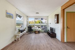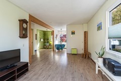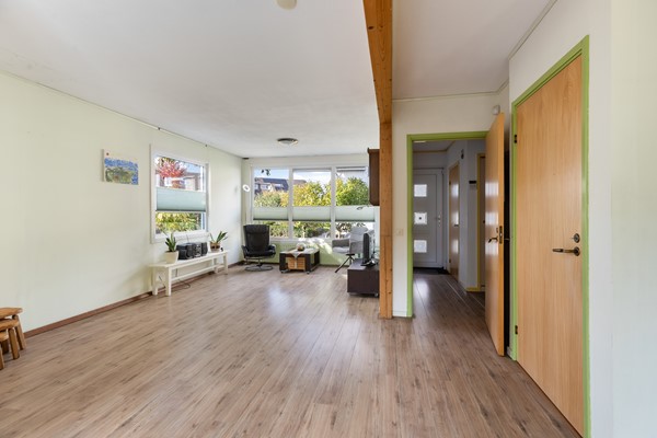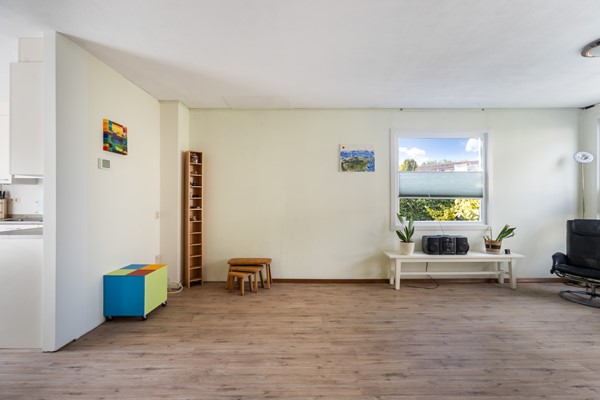 De woonkamer is voorzien van een geïsoleerde betonvloer, v.v. laminaatvloer op een Novilon ondervloer, wat zorgt voor extra loopcomfort en geluiddemping.