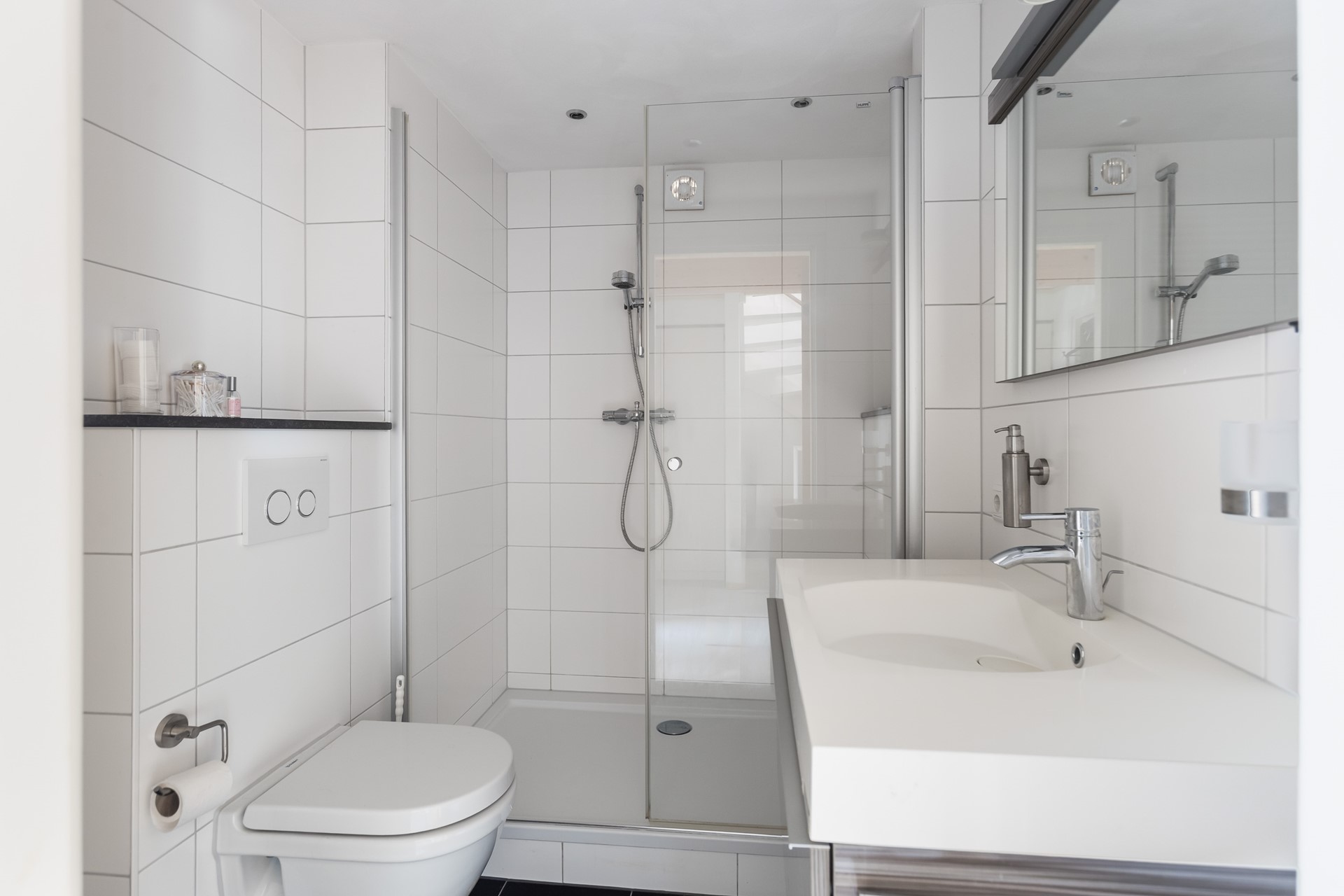 Aan de achterzijde zorgen Somfy-screens voor comfort op zonnige dagen en de Intergas HR-combiketel (2015, eigendom) zorgt voor energiezuinig warmtecomfort.