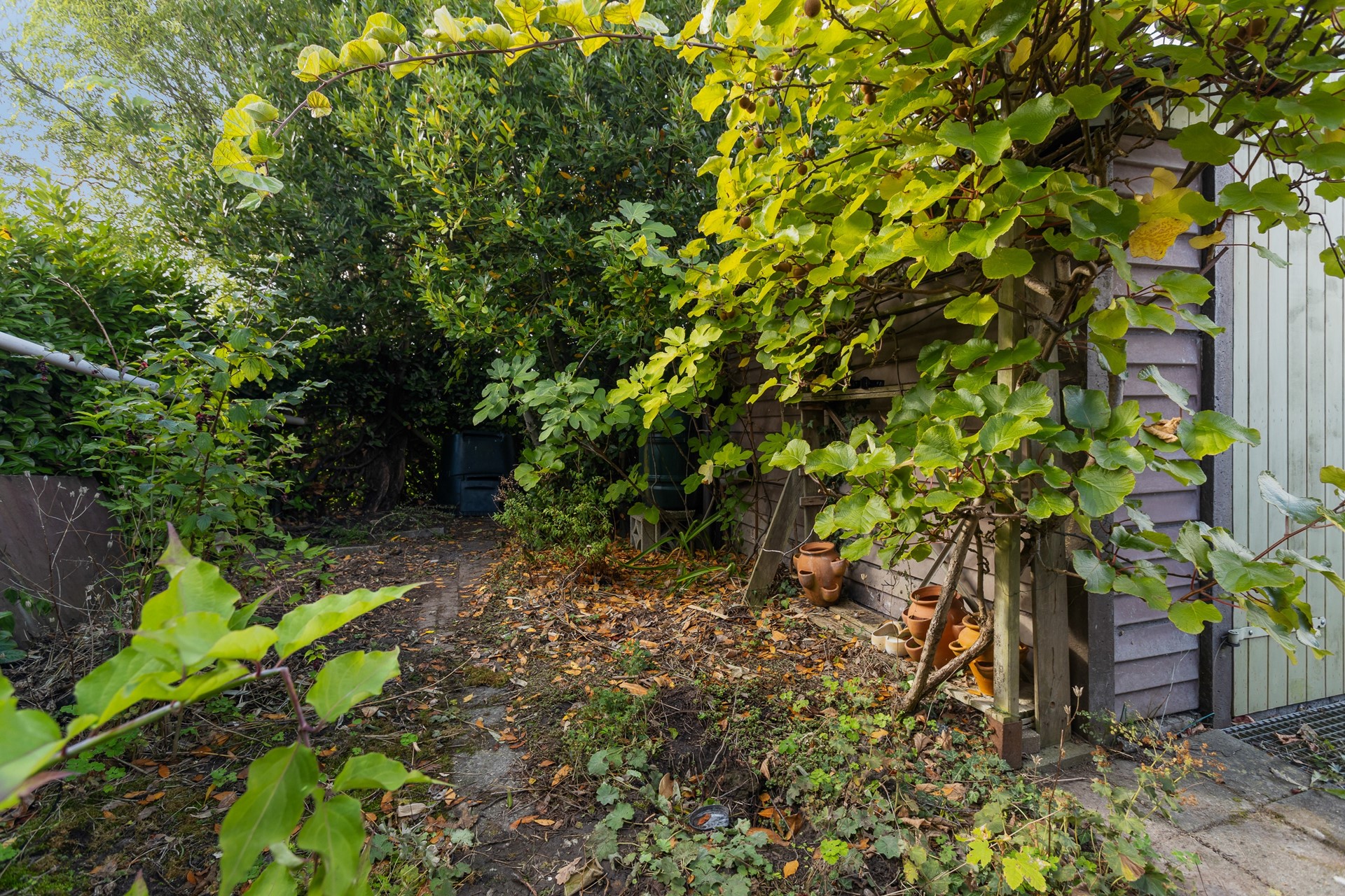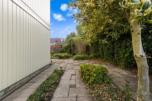 De voortuin is aangrenzend aan de grote zij-en achtertuin, welke op het noordoosten is gelegen en biedt dankzij de royale afmetingen altijd een plekje in de zon of schaduw. Hier kunt u heerlijk ontspannen, tuinieren of een extra terras creëren – de mogelijkheden zijn eindeloos.