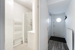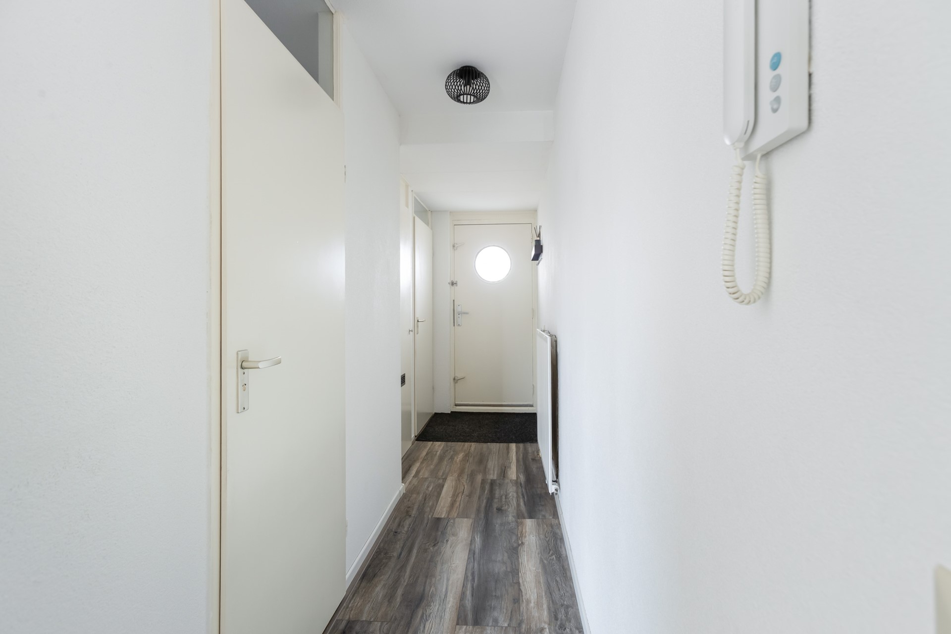 Centrale, afgesloten entree met bellen- en brievenbussentableau. In de onderbouw bevindt zich de eigen berging (ca. 6 m²), voorzien van elektra. Via het trappenhuis bereik je de galerij op de tweede verdieping.