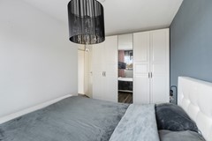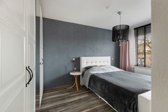 De ruime hoofdslaapkamer biedt voldoende plaats voor een groot bed en een kledingkast.
