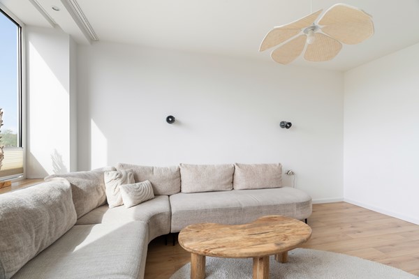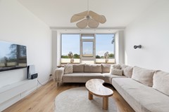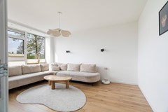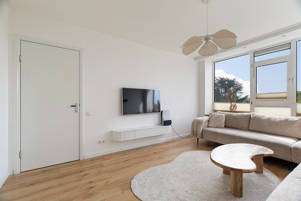 De woonkamer is gelegen aan de achterzijde van het appartement en heeft een gunstige ligging op het zuiden, waardoor de ruimte profiteert van veel natuurlijk licht. De woonkamer is ruim van opzet en biedt voldoende plaats voor een grote zithoek.