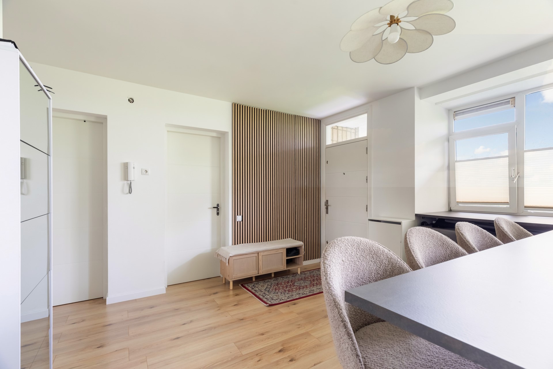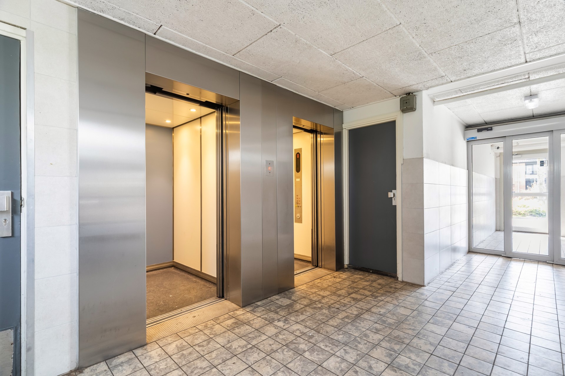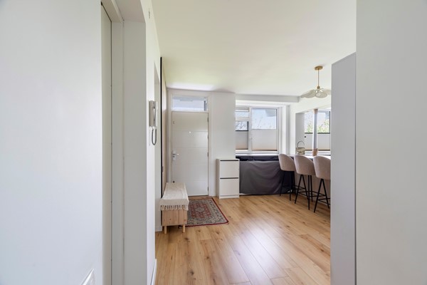 Via de galerij bereikt u de entree van het appartement. Naast de voordeur buiten bevindt zich de meterkast, welke is voorzien van zeven groepen en slimme meters. Bij binnenkomst komt u in de hal die toegang biedt tot de verschillende vertrekken van de woning.