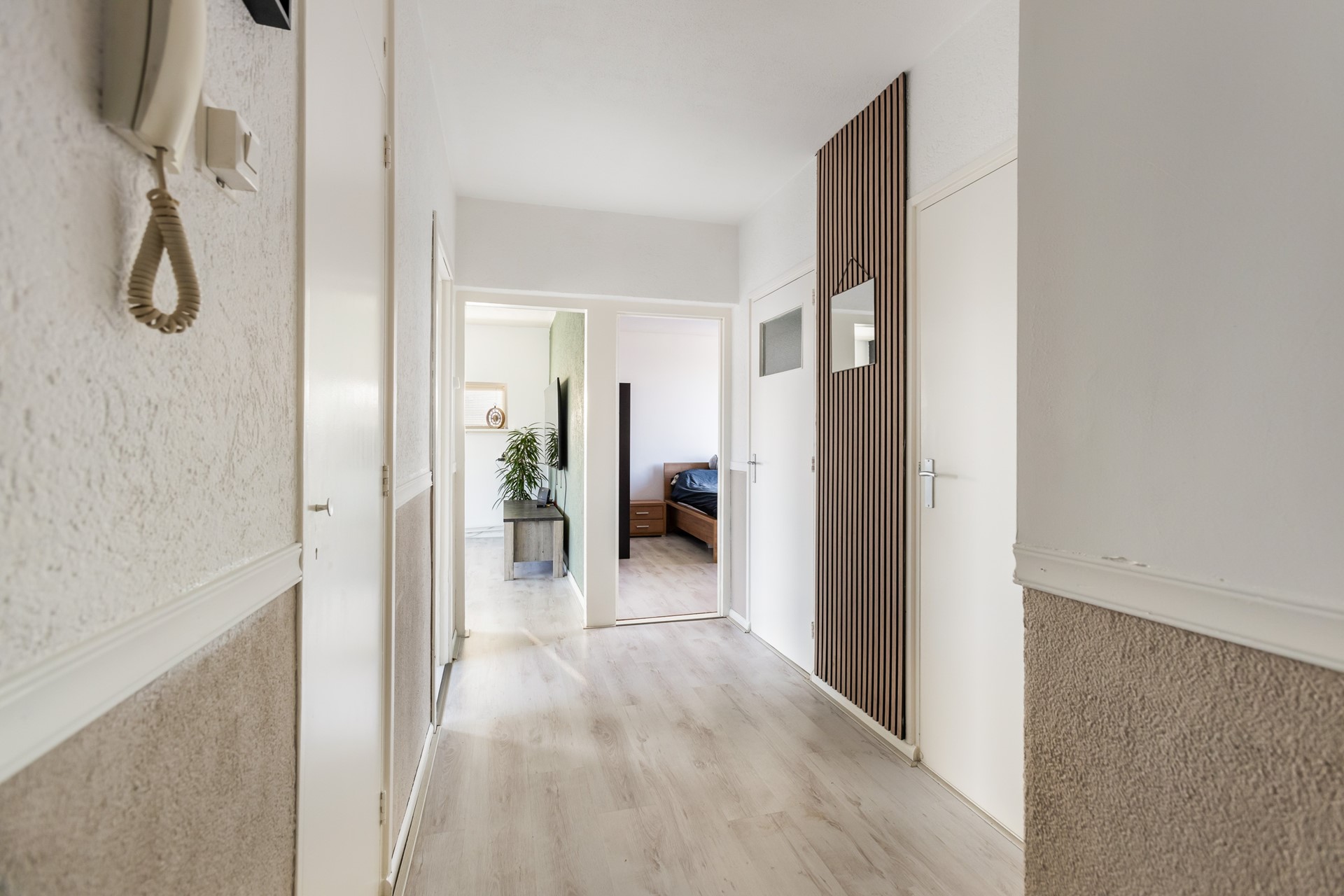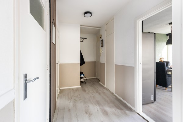 Via de entree kom je in de hal, die toegang biedt tot vrijwel alle vertrekken van het appartement. De hal is afgewerkt met een laminaatvloer.