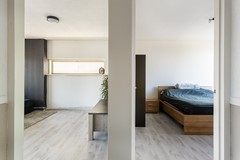 De woning beschikt over een ruime woonkamer met open eetgedeelte, een riante slaapkamer met badkamer (ensuite), een keuken en een separaat toilet. Kom je een slaapkamer tekort? Dan is het mogelijk om in de eetkamer een extra slaapkamer te creëren, die afsluitbaar is via een deur.