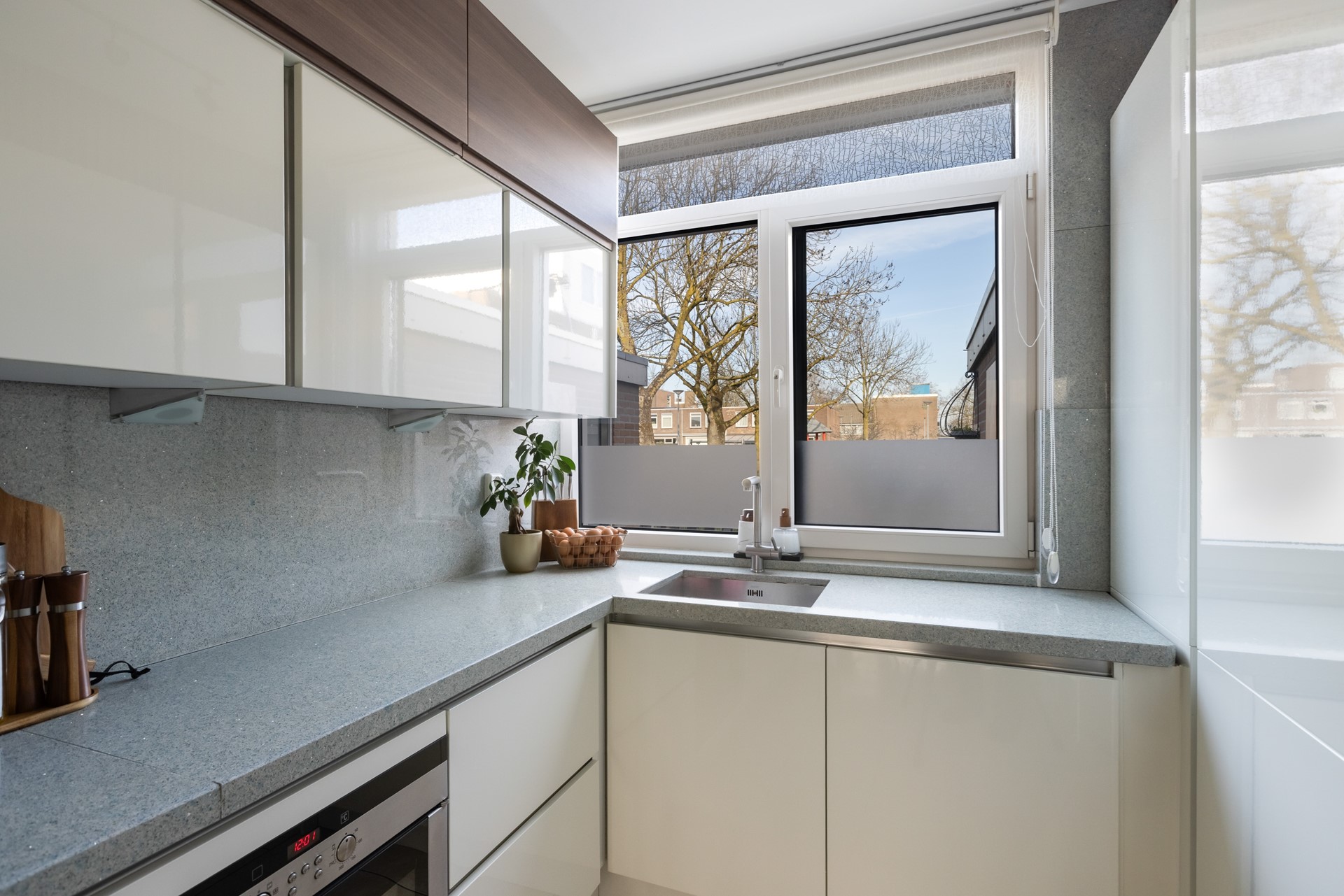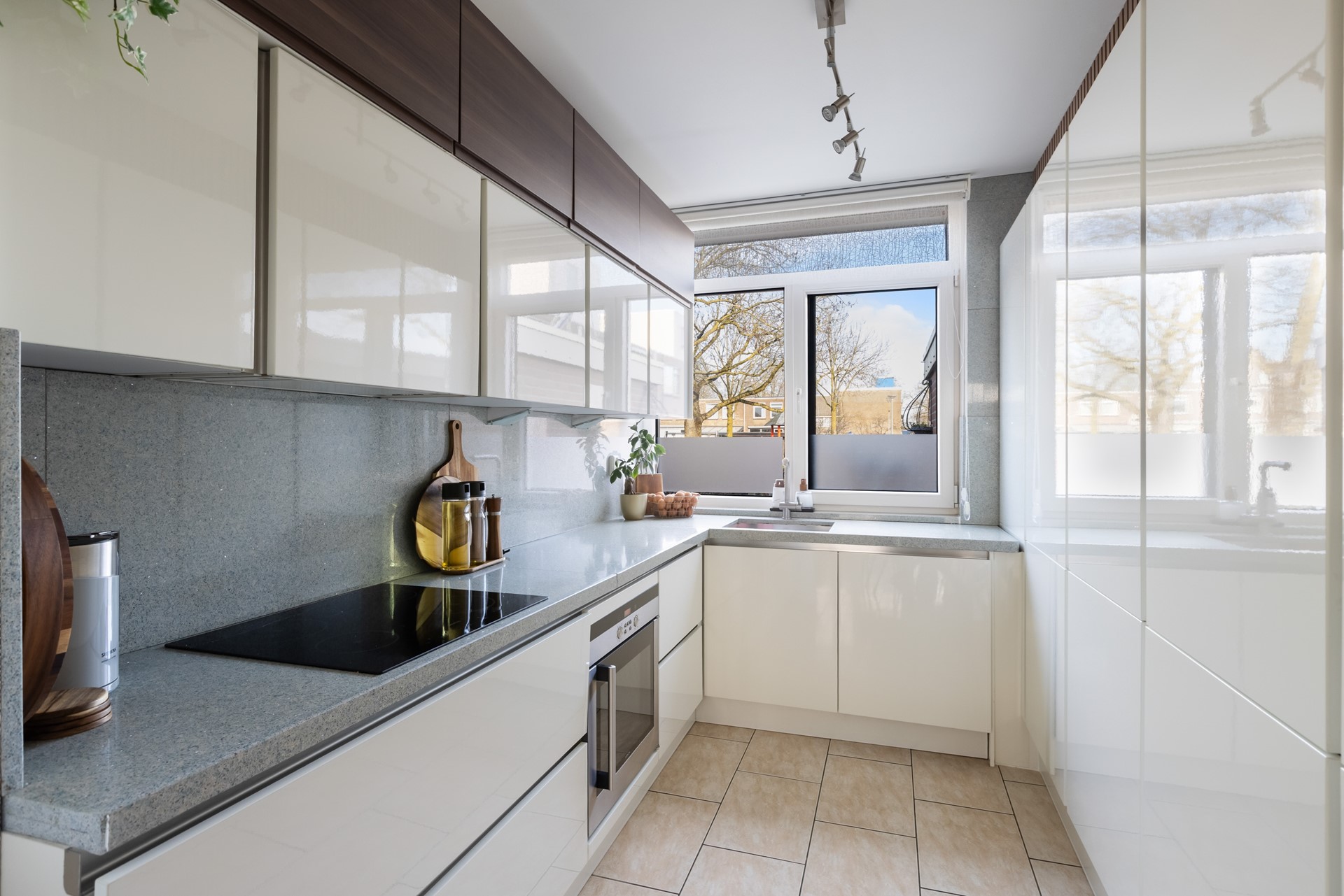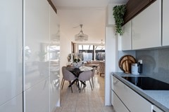 De keuken bevindt zich aan de voorzijde van de woning en is circa 1,5 jaar oud. De keuken is uitgevoerd in witte kasten. Het granieten werkblad en de Siemens inbouwapparatuur (waaronder een koelkast, oven en inductiekookplaat) zijn circa 4 jaar oud. Daarnaast zijn er vier hoge kasten aanwezig, wat zorgt voor veel opbergruimte.