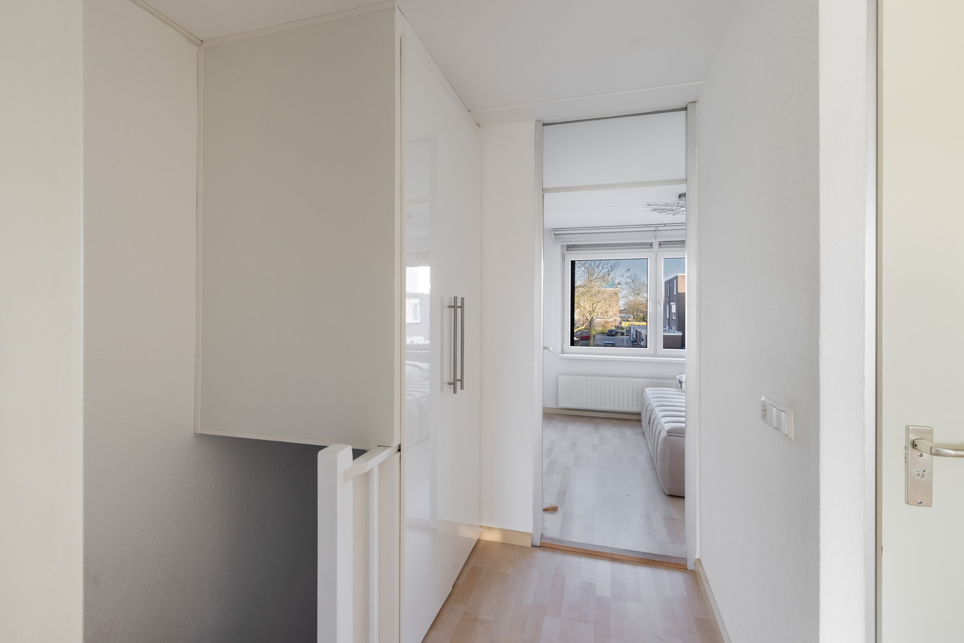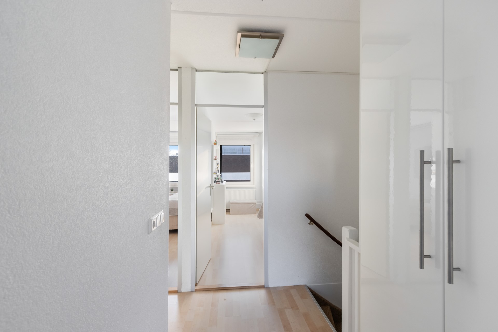 Op de overloop heb je toegang tot drie slaapkamers, de badkamer en een berging. De gehele verdieping is afgewerkt met laminaat.