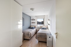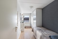 Aan de achterzijde bevinden zich twee slaapkamers. Aan de voorzijde ligt een ruime hoofdslaapkamer met voldoende plaats voor een groot bed en kastruimte.