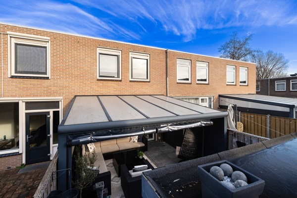 De zonnige achtertuin is gelegen op het zuiden en biedt volop mogelijkheden om heerlijk buiten te zitten. De tuin is strak betegeld met 80x80 cm Bluestone Chinezen hardsteen De schuttingen zijn vernieuwd in 2021. Achter in de tuin staat een berging voor extra opslag.