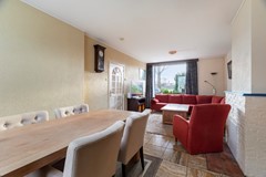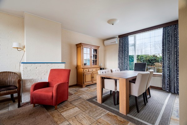 De woonkamer is licht en comfortabel en beschikt over een airconditioning (2022) die kan koelen én verwarmen. De achtertuin ligt op het noorden en biedt volop mogelijkheden voor eigen inrichting.