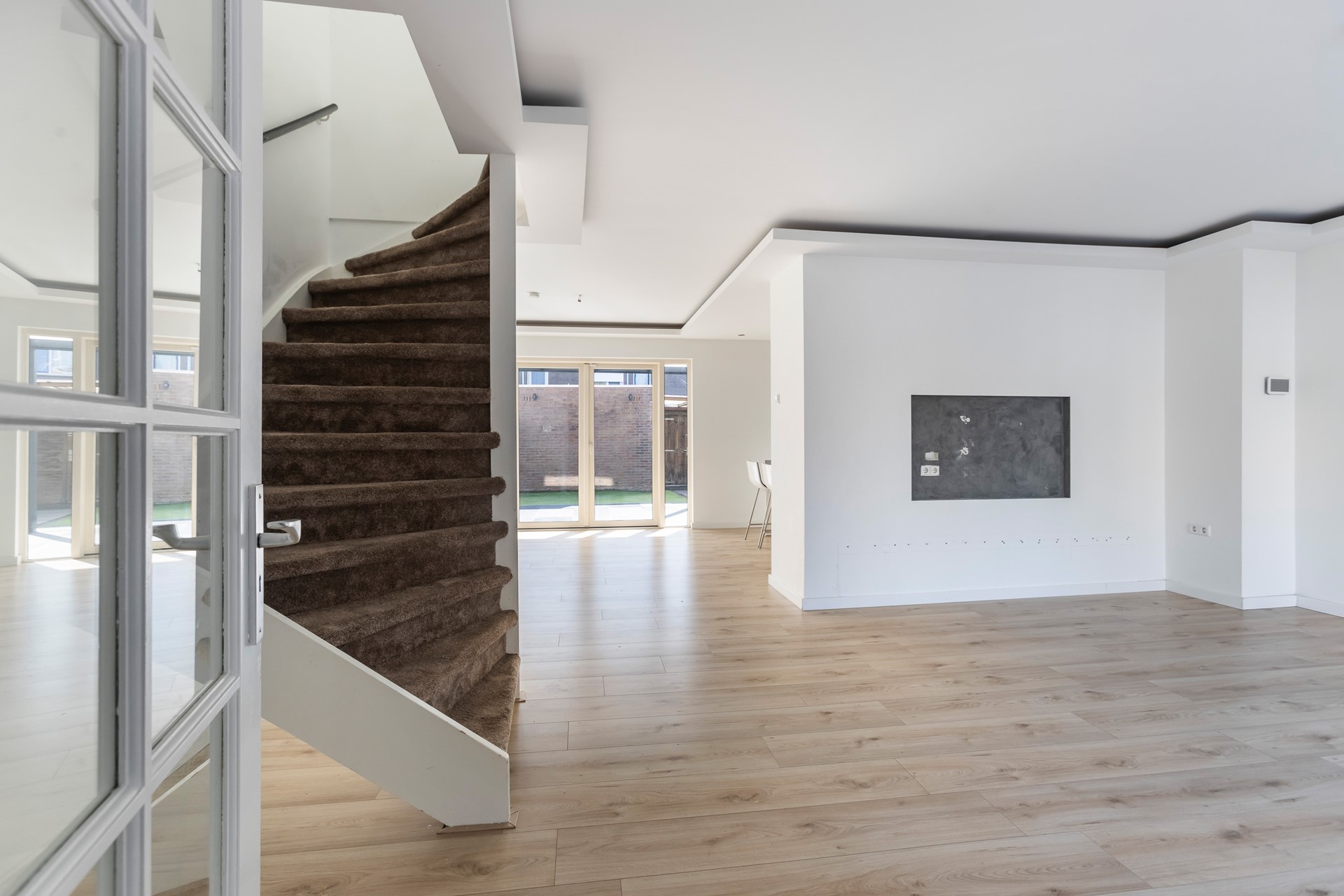 Entree in hal met meterkast (8 groepen + 2 aardlekschakelaar), glasvezelinternet, handige (garderobekast), toilet toegang naar de woonkamer met open keuken.