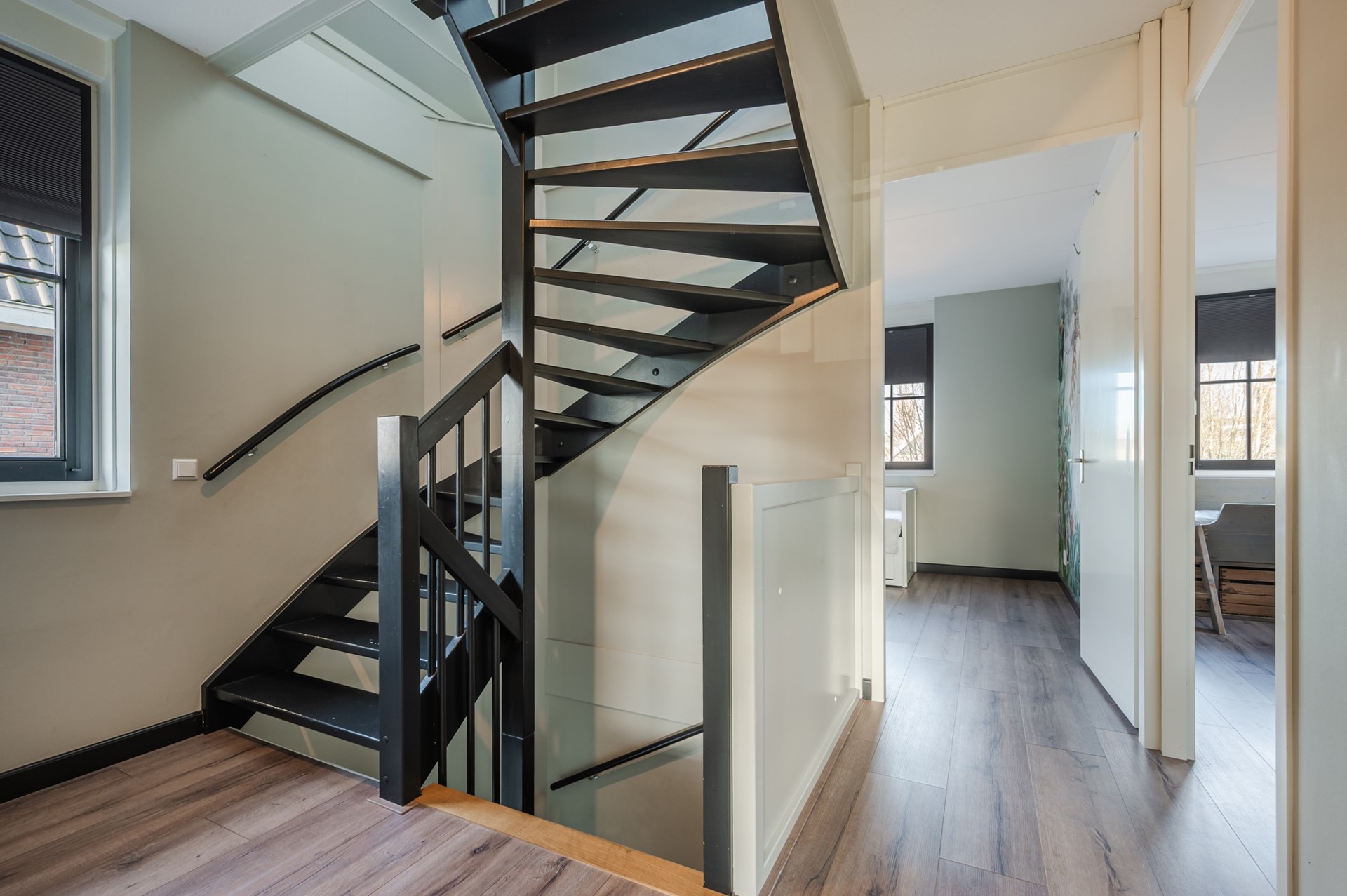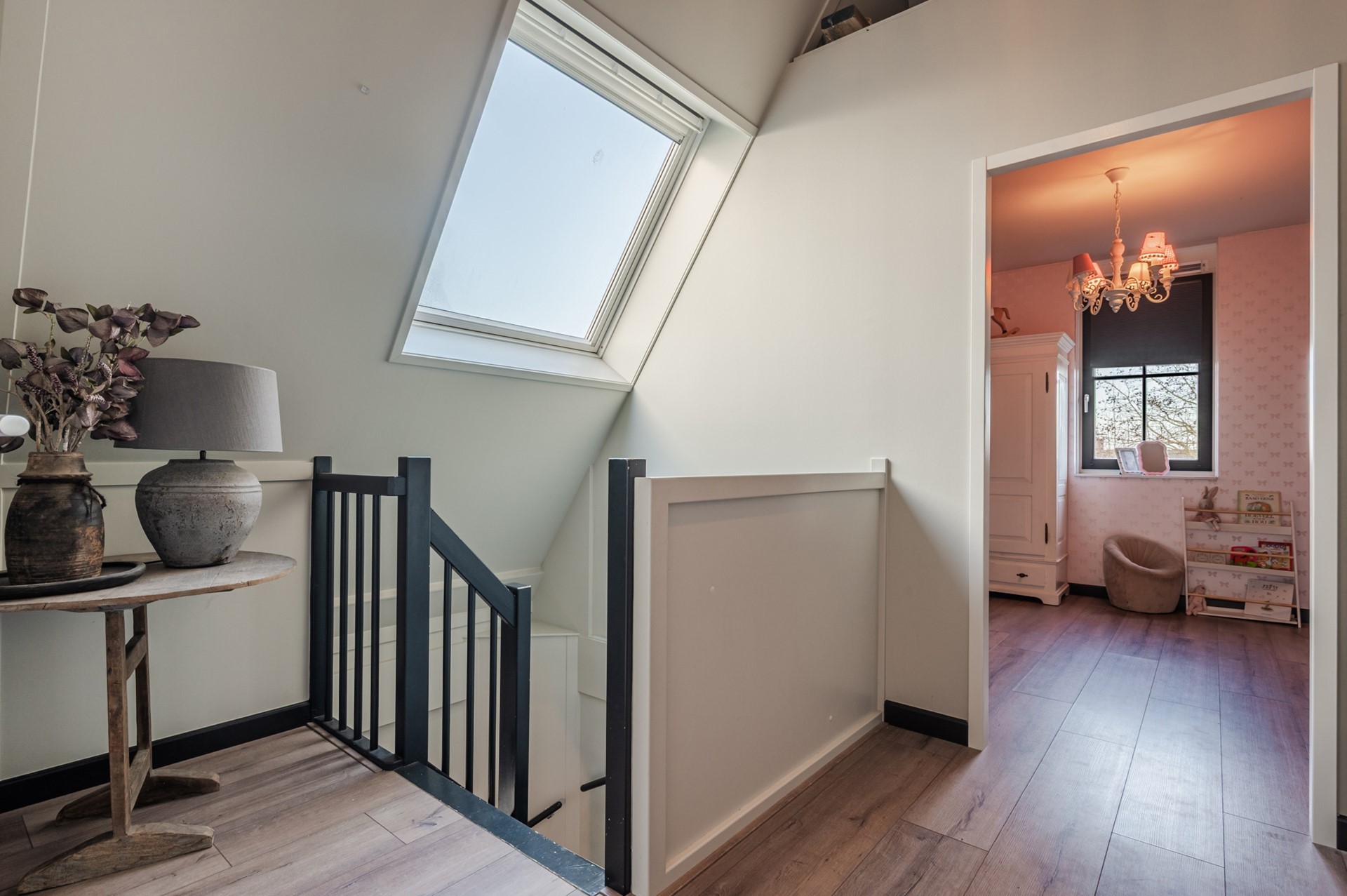 • Fijne overloop met dakramen en thuiswerkplek plus aparte technische ruimte met wasmachine- en drogeraansluiting