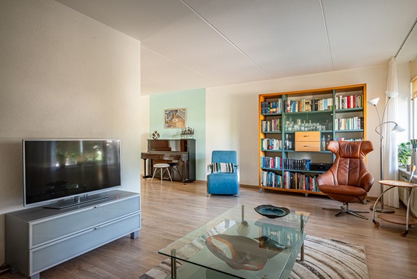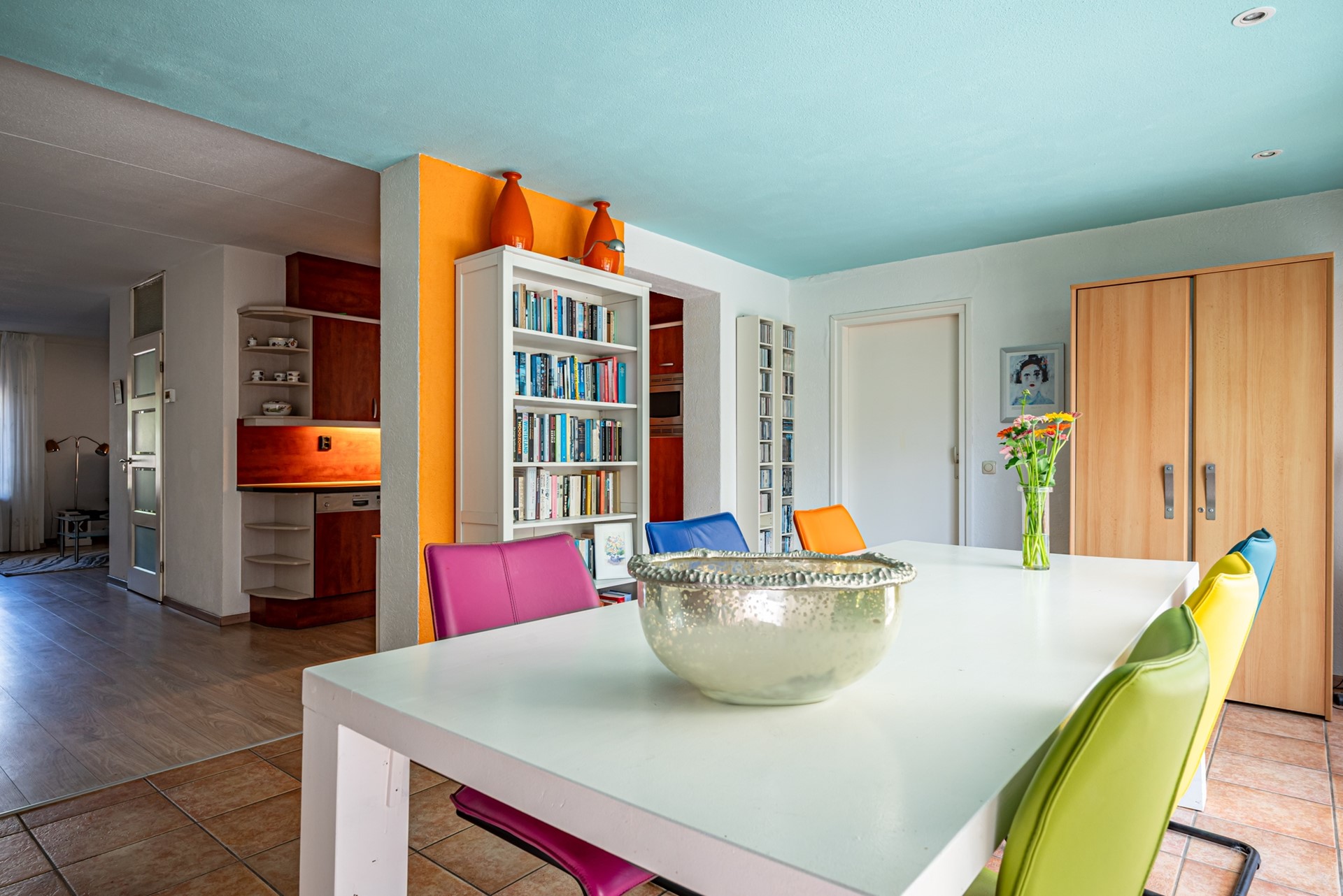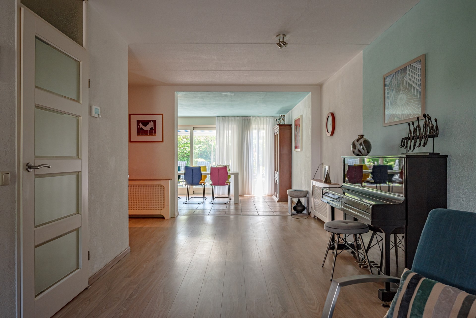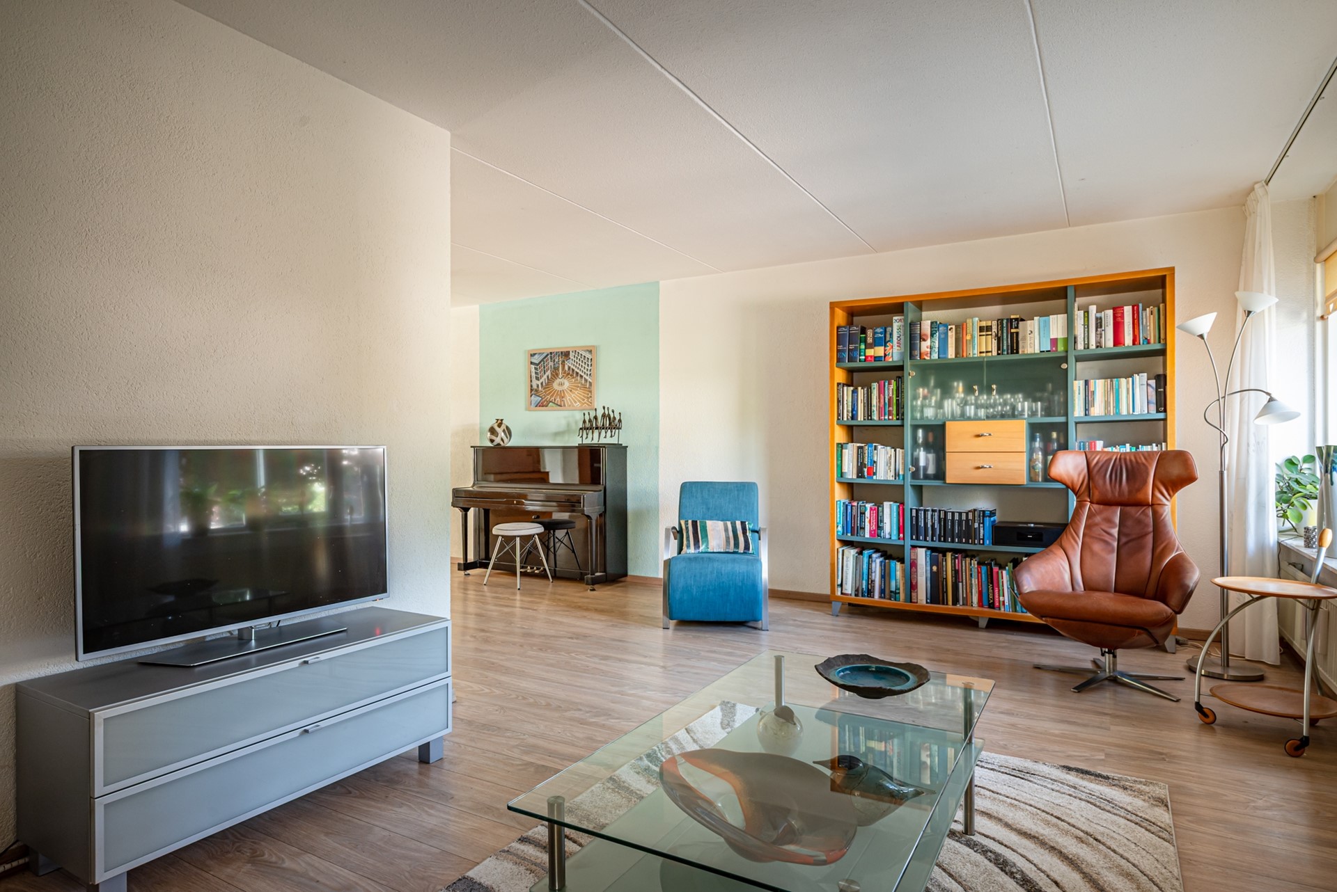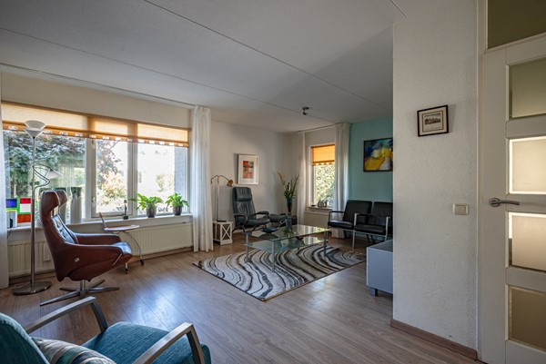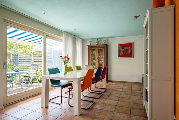 - Doorzonwoonkamer met uitgebouwde eethoek (2001) en schuifpui naar de tuin