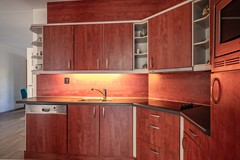 - Keuken met inbouwapparatuur: gasfornuis met afzuigkap, oven, koelkast en vaatwasser