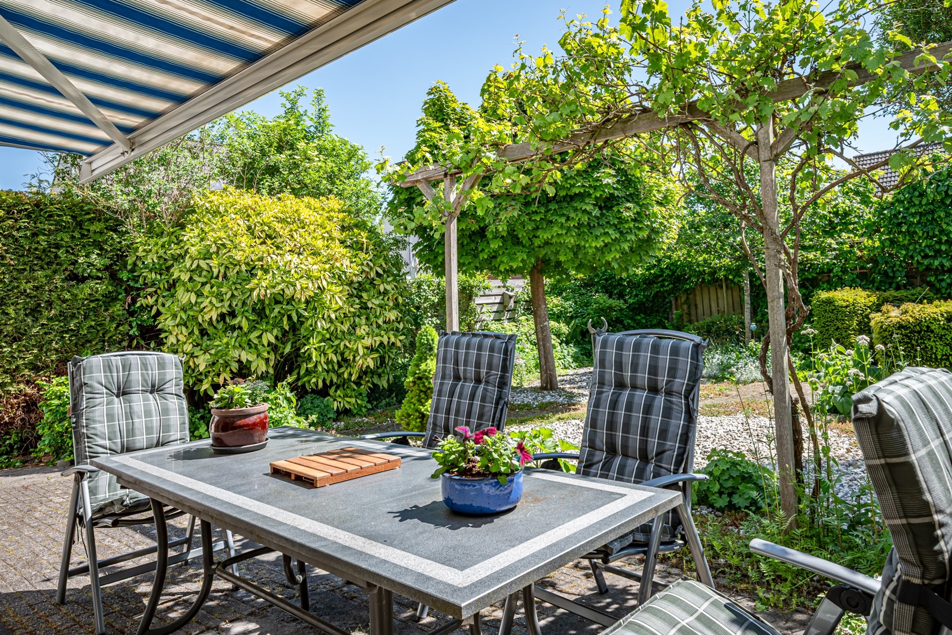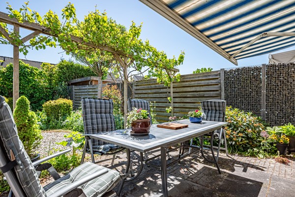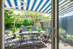 - Elektrisch zonnescherm en veel privacy in de tuin