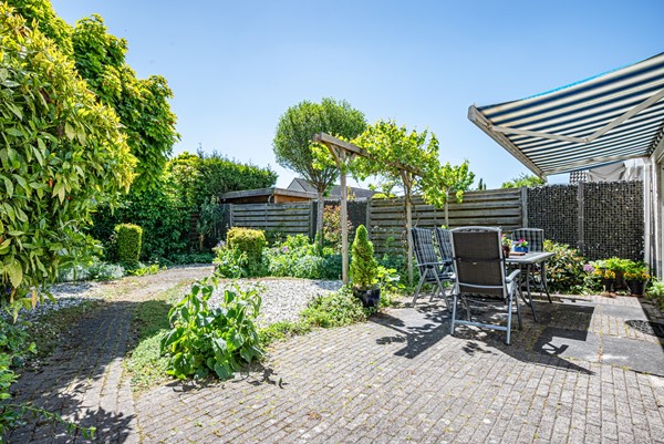 De achtertuin ligt gunstig op het zuiden, waardoor je de hele dag zon hebt. Met het elektrische zonnescherm creëer je eenvoudig schaduw op warme dagen, zodat je altijd comfortabel buiten zit. De tuin is ruim genoeg voor spelende kinderen, een loungeset én een grote eettafel. Aan de voorzijde beschik je over een eigen oprit met plek voor twee auto’s, en daarnaast zijn er extra openbare parkeerplekken in de straat.