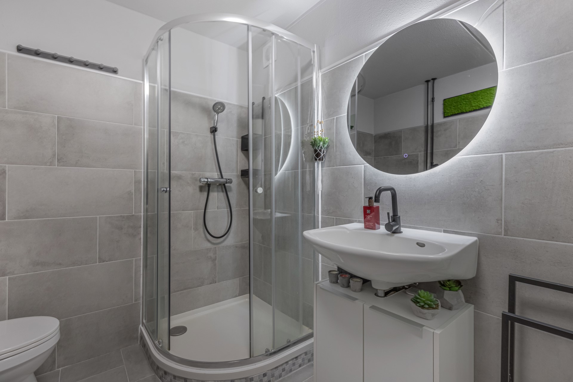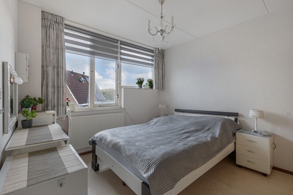 Op de eerste verdieping bevinden zich drie slaapkamers: twee aan de achterzijde en één aan de voorzijde. De badkamer is in 2024 compleet vernieuwd en uitgerust met een douche, wastafel, toilet en wasmachineaansluiting—een zorg minder voor de komende jaren.