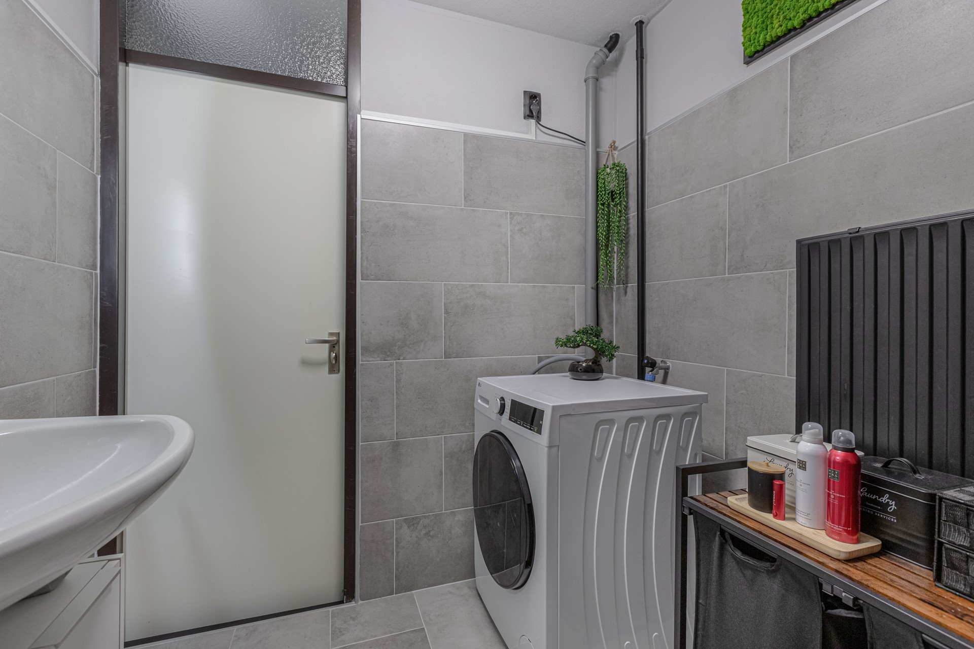 Je komt binnen via de net vernieuwde kunststof voordeur, in de hal, met toegang tot het toilet, de meterkast, de trapopgang en de praktische berging met zolder. De woonkamer heeft een fijne lichtinval en biedt een rustig uitzicht op de achtertuin. De trapkast zorgt voor extra opbergruimte. Aan de voorzijde ligt de halfopen keuken. Deze is eenvoudig maar functioneel uitgevoerd en vormt daarmee een ideale basis voor een toekomstige moderne keuken die volledig aansluit bij je eigen smaak en stijl.