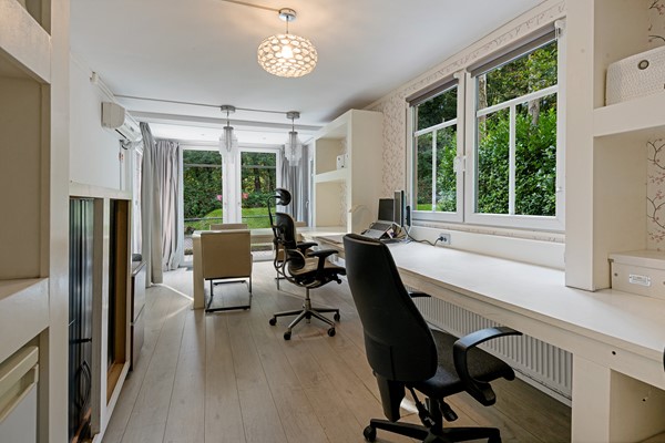 • Openslaande deuren in de kantoorruimte naar de tuin