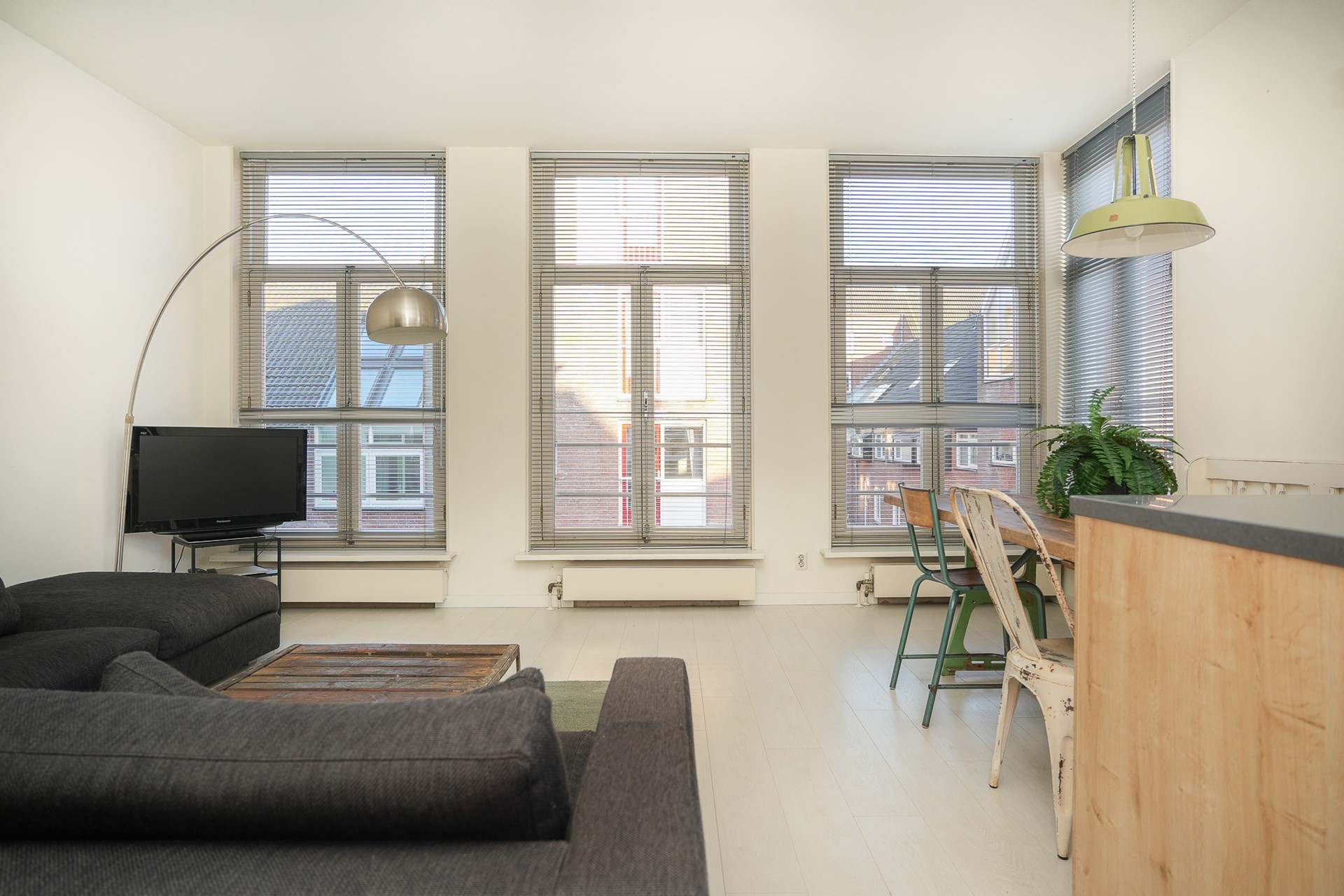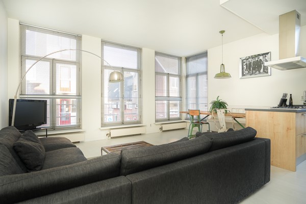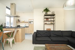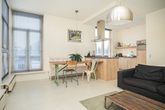 De woonkamer is licht en prettig van formaat, met grote ramen die zorgen voor een open uitstraling en een fijne lichtinval. Er is voldoende ruimte voor zowel een zithoek als een eettafel.