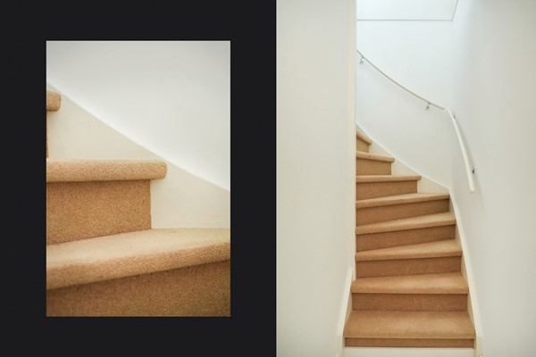Je komt binnen op de begane grond. Hier bevindt zich de berging, geschikt voor fietsen en extra opslag. Vanuit hier ga je via de trap naar boven, richting het appartement.