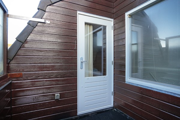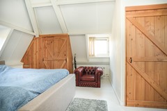 De tweede verdieping is ingericht als slaapverdieping. De slaapkamer is een rustige ruimte, met de kapconstructie in het zicht en vaste kastruimte.