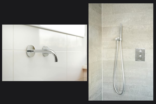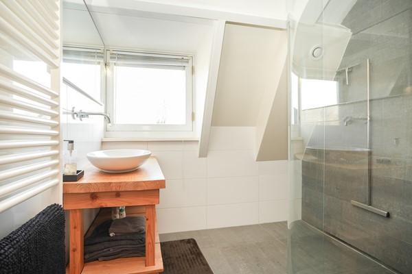 De badkamer is verzorgd en voorzien van een inloopdouche en wastafelmeubel.