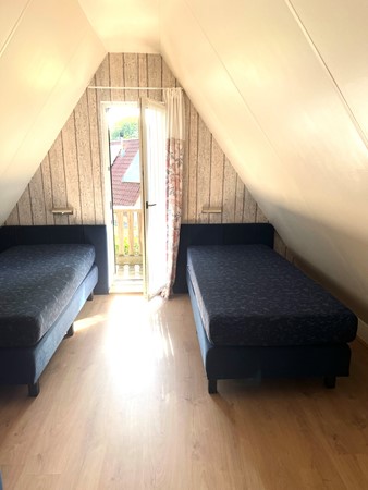 Via de vaste trap in de woonkamer komt u op de 2e verdieping, waar zich 2 ruime slaapkamers bevinden en op de overloop een vaste kast. Alle slaapkamers zijn voorzien van 2 boxspringbedden. Via één van de slaapkamers heeft u toegang tot het balkon.