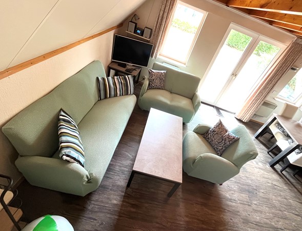 * Deze recreatiebungalow is voorzien van kunststof ramen en deuren met dubbel glas.