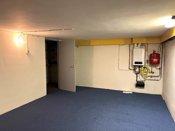 Souterrain bereikbaar vanuit zowel de garage als de keuken (2 trappen). Drie grote ruimtes, voor vele doeleinden geschikt. In een van de ruimten hangt de CV-ketel. Aan de voorzijde ligt een grote wasruimte met de aansluitingen voor de wasmachine en de droger.