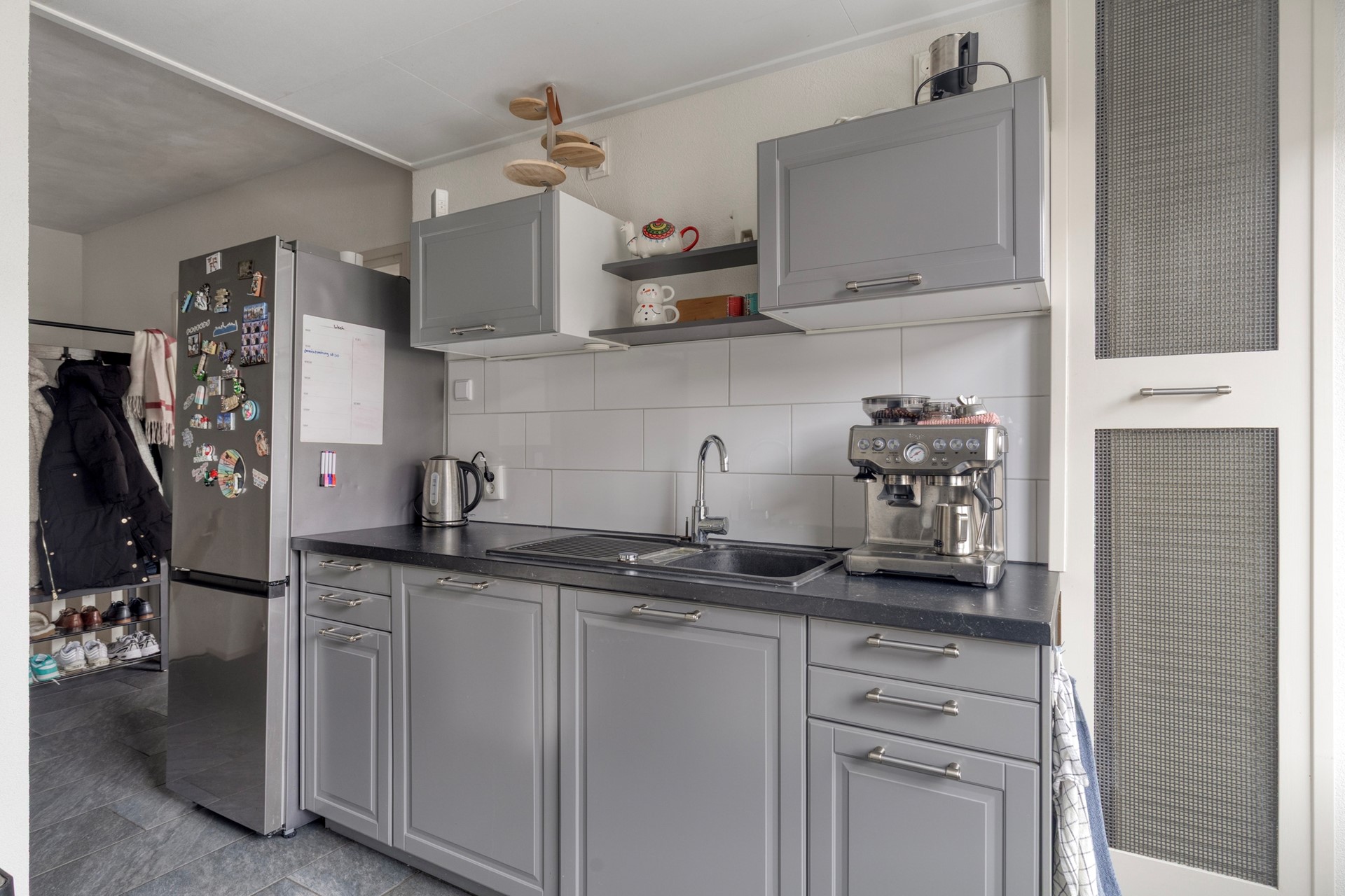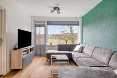 De woning beschikt over een lichte en royale woonkamer waar je met gemak een gezellige zithoek en een grote eettafel kunt plaatsen. Vanuit de woonkamer heb je toegang tot het balkon op het westen, een heerlijke plek om aan het einde van de dag van de zon te genieten. Aansluitend vind je de halfopen keuken, praktisch ingericht en voorzien van een vaatwasser en een kookhoek met gaskookplaat. Ook vanuit de keuken is het tweede balkon aan de voorzijde toegankelijk.