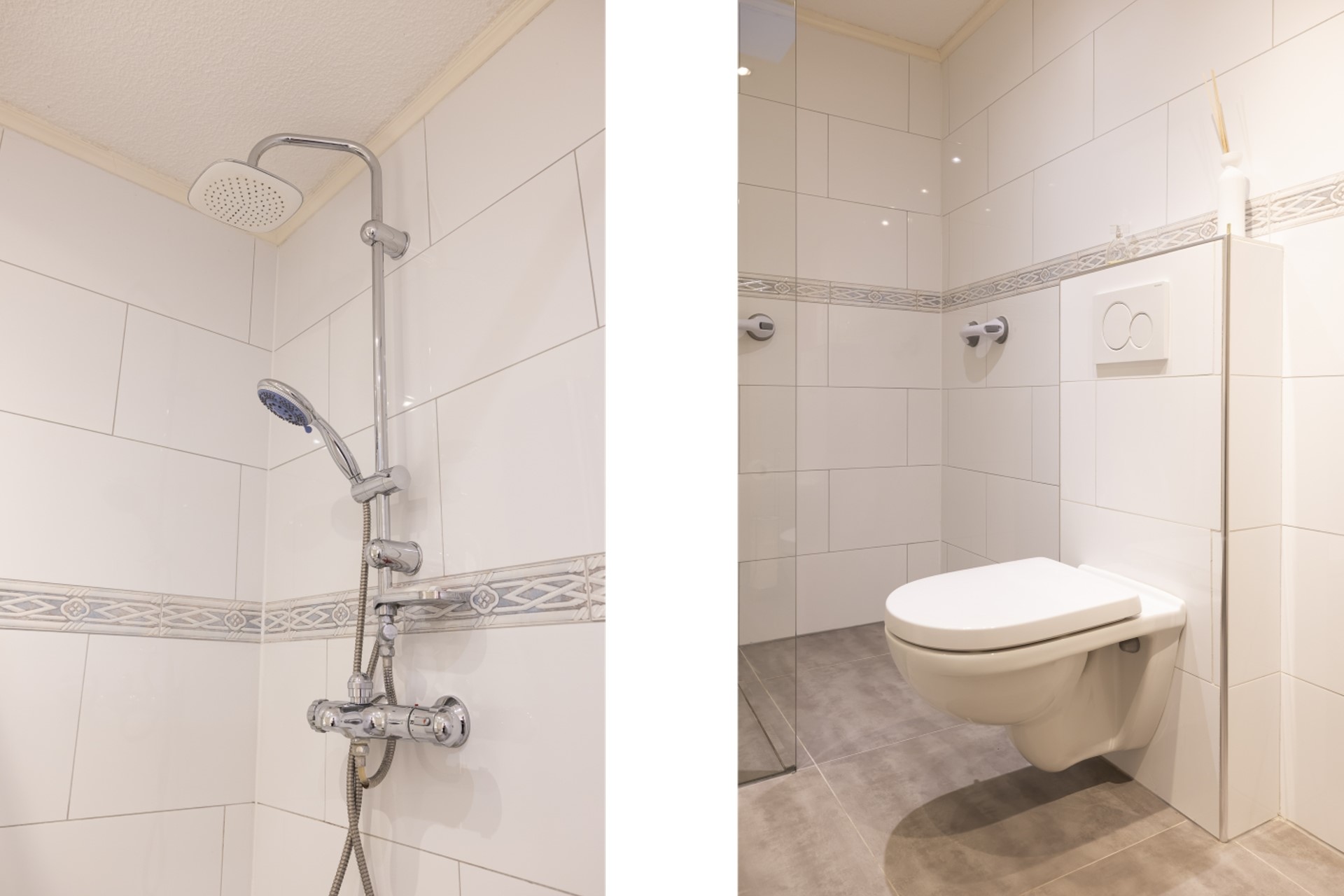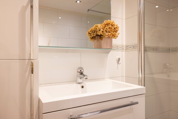Op de eerste verdieping vind je de overloop met toegang naar de drie slaapkamers en de nette badkamer met douche en het tweede toilet. De slaapkamer aan de voorzijde is extra breed wat extra fijn is voor de kledingkasten. Aan de achterzijde zijn nog eens twee slaapkamers waarvan één toegang geeft tot het dakterras.