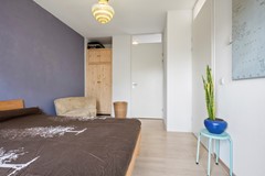 Aan de voorzijde bevindt zich de royale slaapkamer, met direct aansluitend de nette badkamer (2023) voorzien van wastafel en inloopdouche. Vanuit de hal bereik je tevens het separate toilet.