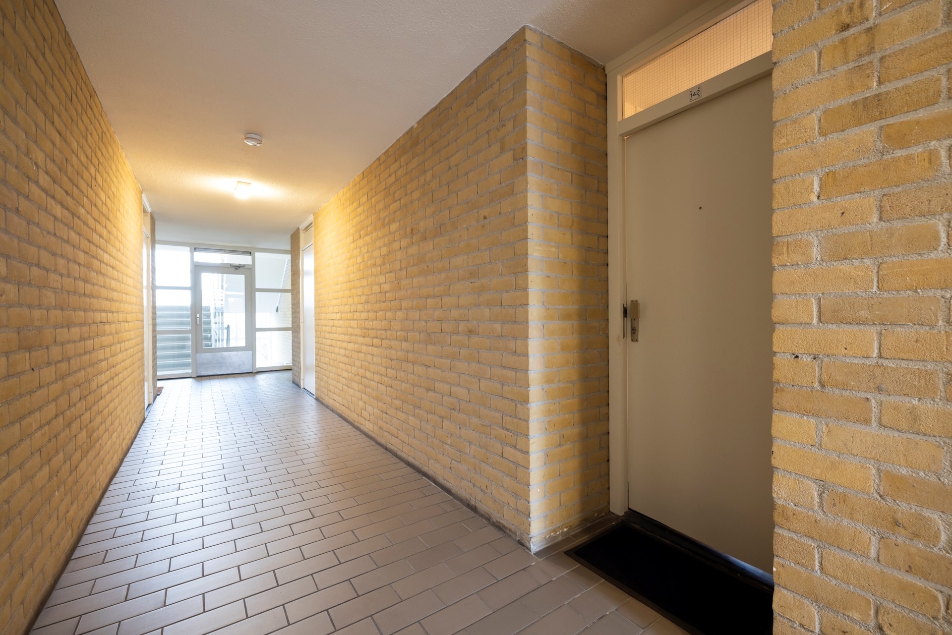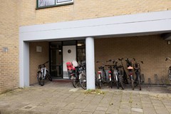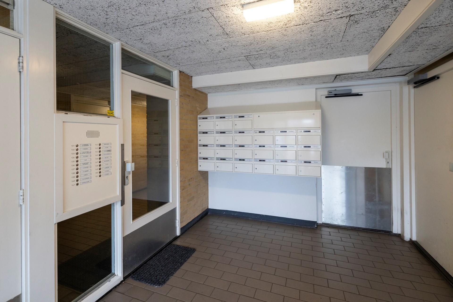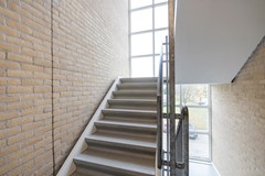 Vanaf het parkeerterrein loop je naar de gezamenlijke, overdekte entree van het gebouw. In de hal zijn de brievenbussen, het bellentableau en de intercom. De bergingen zijn hier eveneens te vinden. Vervolgens ga je met de trap naar tweede verdieping.